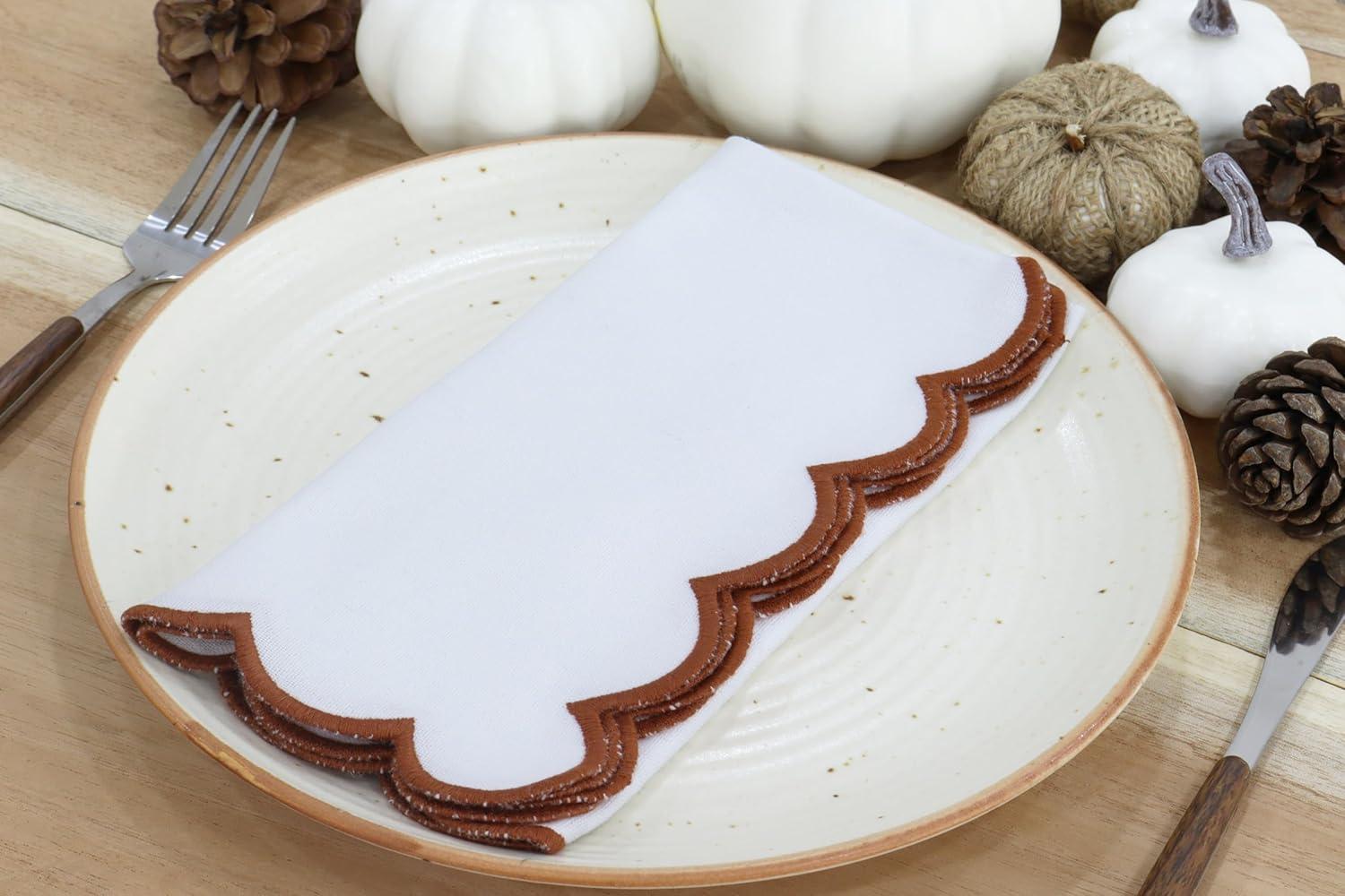 • PurpleEssences Scalloped Embroidery Cloth Napkins Table Decor Fall Thanksgiving 100% Cotton Set of 4-18 x 18 inch – Aurelia Edges – Rust(White(edges- Rust))