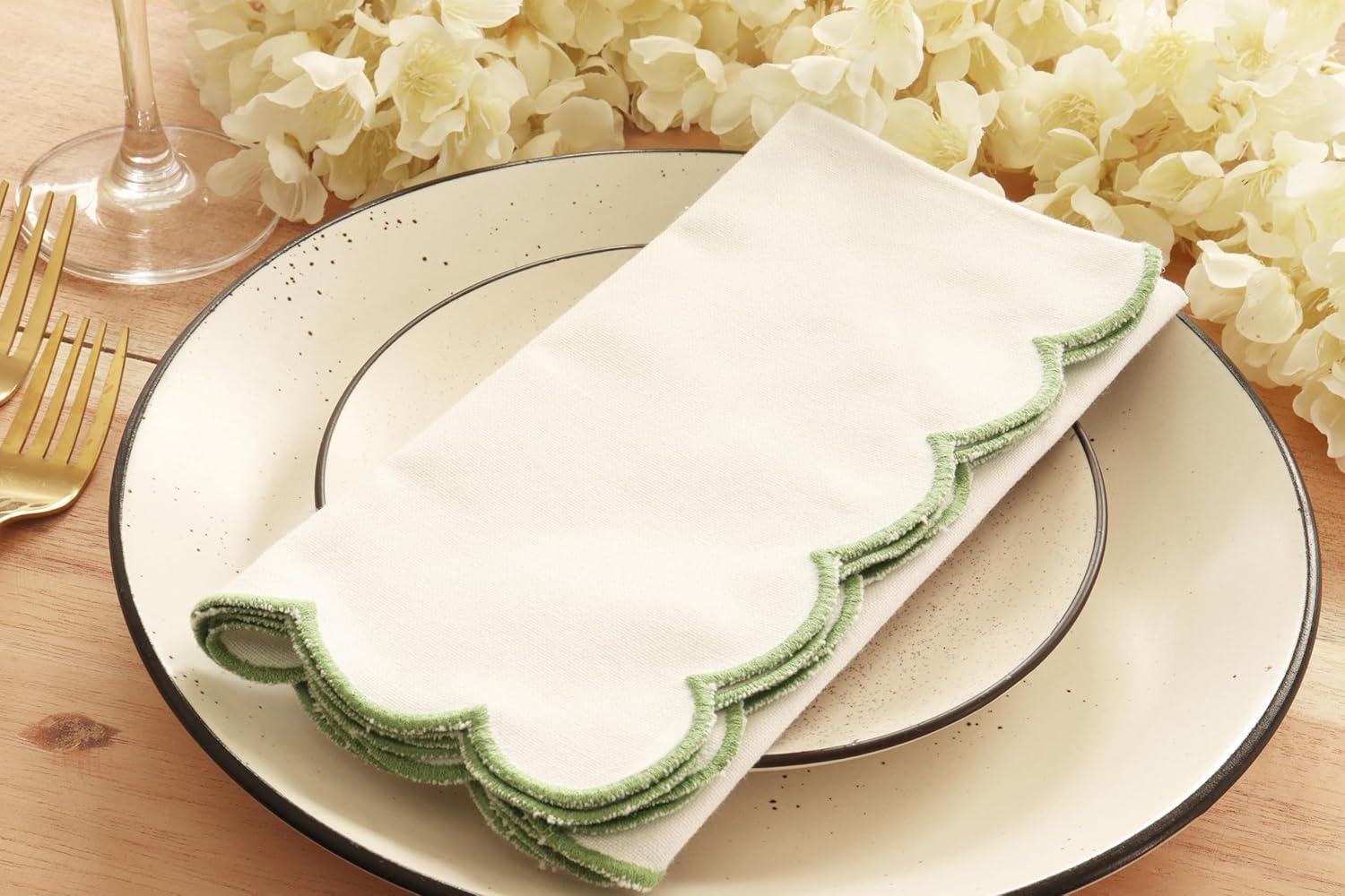 • PurpleEssences Scalloped Embroidery Cloth Napkins Table Decor Fall Thanksgiving 100% Cotton Set of 4-18 x 18 inch – Aurelia Edges – Rust(White(edges- Sage Green))