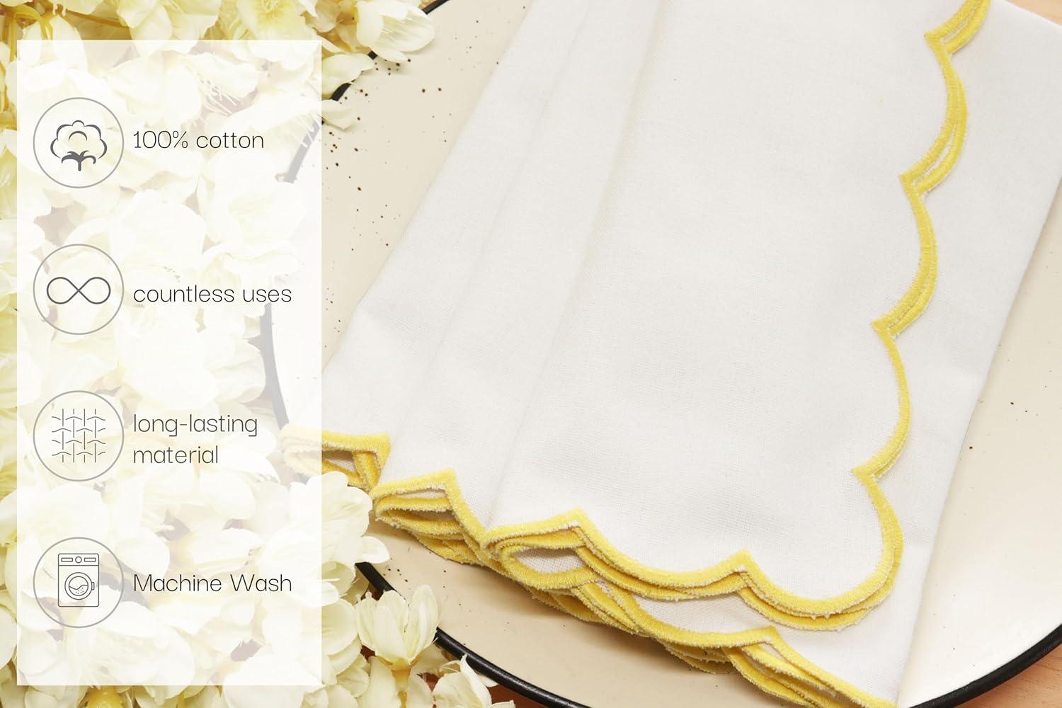 PurpleEssences Scalloped Embroidery Cloth Napkins Table Decor Fall Thanksgiving 100% Cotton Set of 4-18 x 18 inch – Aurelia Edges – Rust(White(edges- Yellow))
