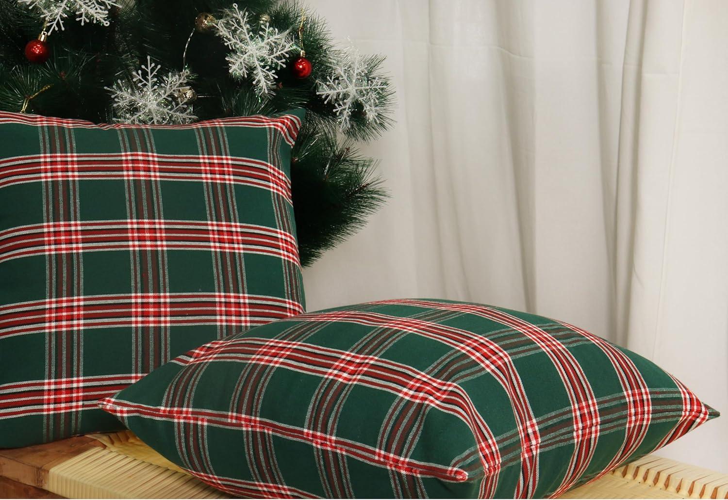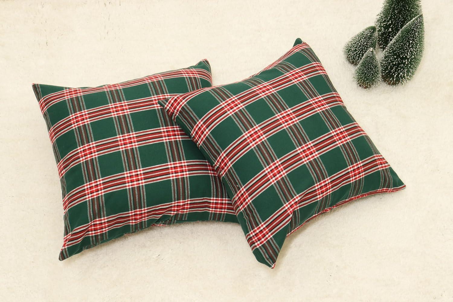 • PurpleEssences Set of 2 Buffalo Plaid Check Throw Pillow Covers Farmhouse Pillow Cushion Case 100% Cotton for Fall Thanksgiving Decor Car Bed Sofa – 12 x 20 Inch – Red and Black(Green – Tartan Plaid)