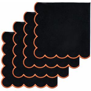 • PurpleEssences Scalloped Embroidery Cloth Napkins Table Decor Fall Thanksgiving 100% Cotton Set of 4-18 x 18 inch – Aurelia Edges – Rust(Black(edges- Orange))