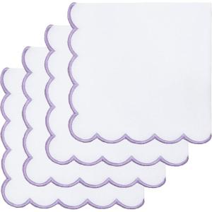 • PurpleEssences Scalloped Embroidery Cloth Napkins Table Decor Fall Thanksgiving 100% Cotton Set of 4-18 x 18 inch – Aurelia Edges – Rust(White(edges- Lavender))