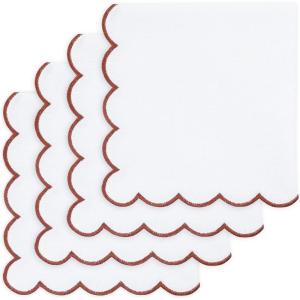 PurpleEssences Scalloped Embroidery Cloth Napkins Table Decor Fall Thanksgiving 100% Cotton Set of 4-18 x 18 inch – Aurelia Edges – Rust(White(edges- Red))
