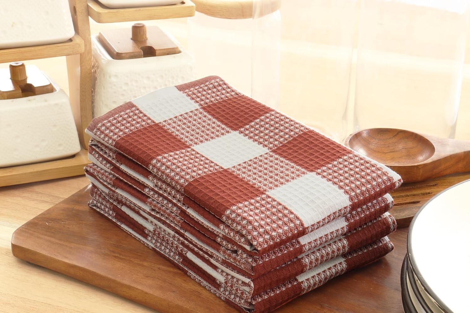 • Waffle Weave Plaid Dish Cloths, 100% Cotton – 12 x 12 Inches, Ultra Soft Absorbent Quick Drying Dish Towels Buffalo Check Dish Rags for Kitchen, 8 Pack – Fall Thanksgiving – Black & White(Rust White)