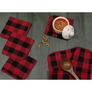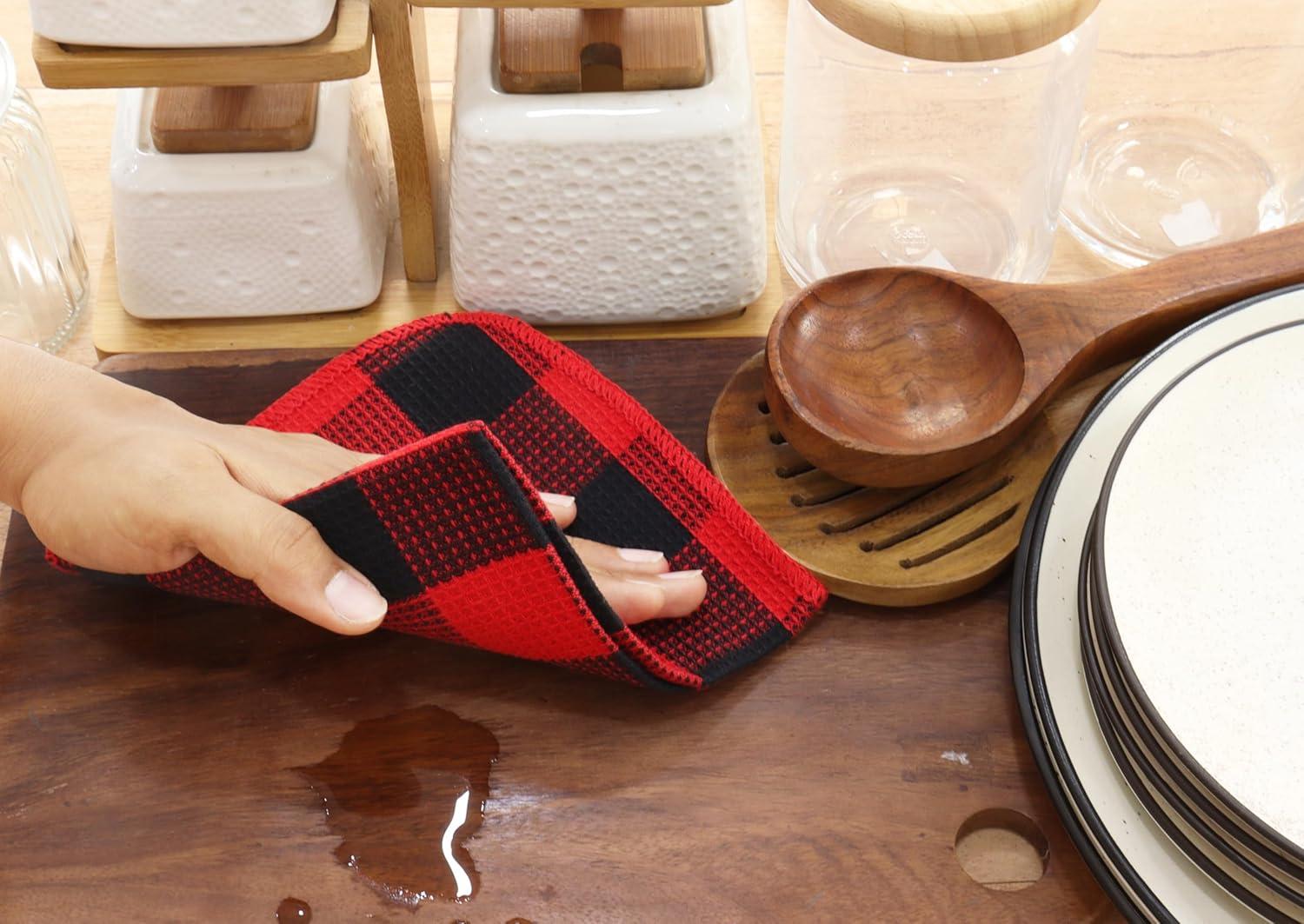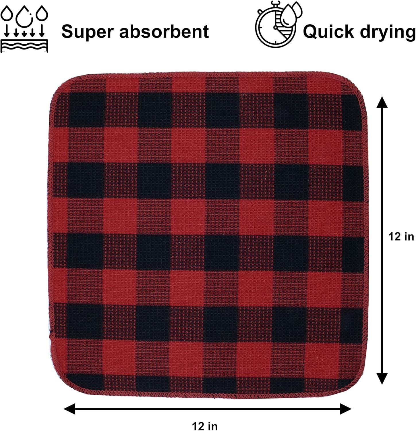 • Waffle Weave Plaid Dish Cloths, 100% Cotton – 12 x 12 Inches, Ultra Soft Absorbent Quick Drying Dish Towels Buffalo Check Dish Rags for Kitchen, 8 Pack – Fall Thanksgiving – Black & White(Red Black)