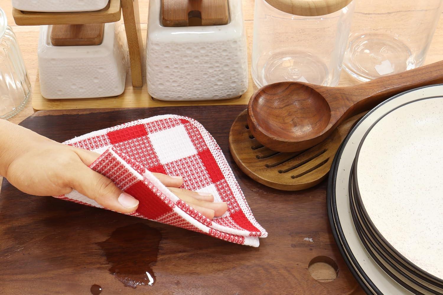 • Waffle Weave Plaid Dish Cloths, 100% Cotton – 12 x 12 Inches, Ultra Soft Absorbent Quick Drying Dish Towels Buffalo Check Dish Rags for Kitchen, 8 Pack – Fall Thanksgiving – Black & White(Red White)