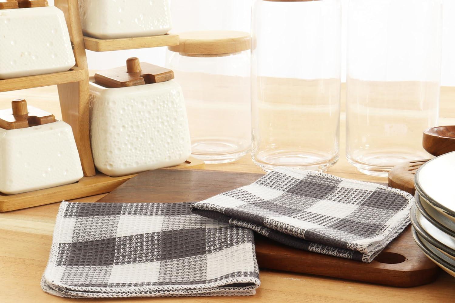 • Waffle Weave Plaid Dish Cloths, 100% Cotton – 12 x 12 Inches, Ultra Soft Absorbent Quick Drying Dish Towels Buffalo Check Dish Rags for Kitchen, 8 Pack – Fall Thanksgiving – Black & White(Grey White)