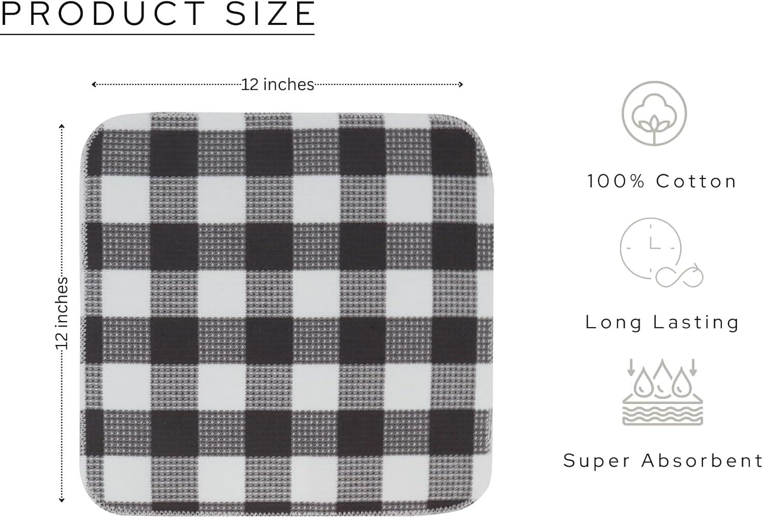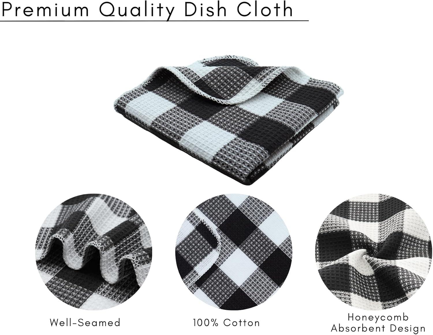 • Waffle Weave Plaid Dish Cloths, 100% Cotton – 12 x 12 Inches, Ultra Soft Absorbent Quick Drying Dish Towels Buffalo Check Dish Rags for Kitchen, 8 Pack – Fall Thanksgiving – Black & White(Black White)
