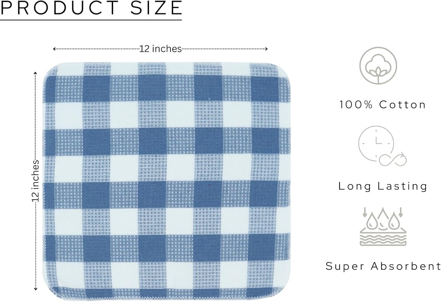 Waffle Weave Plaid Dish Cloths, 100% Cotton – 12 x 12 Inches, Ultra Soft Absorbent Quick Drying Dish Towels Buffalo Check Dish Rags for Kitchen, 8 Pack – Fall Thanksgiving – Black & White(Smoky Blue White)