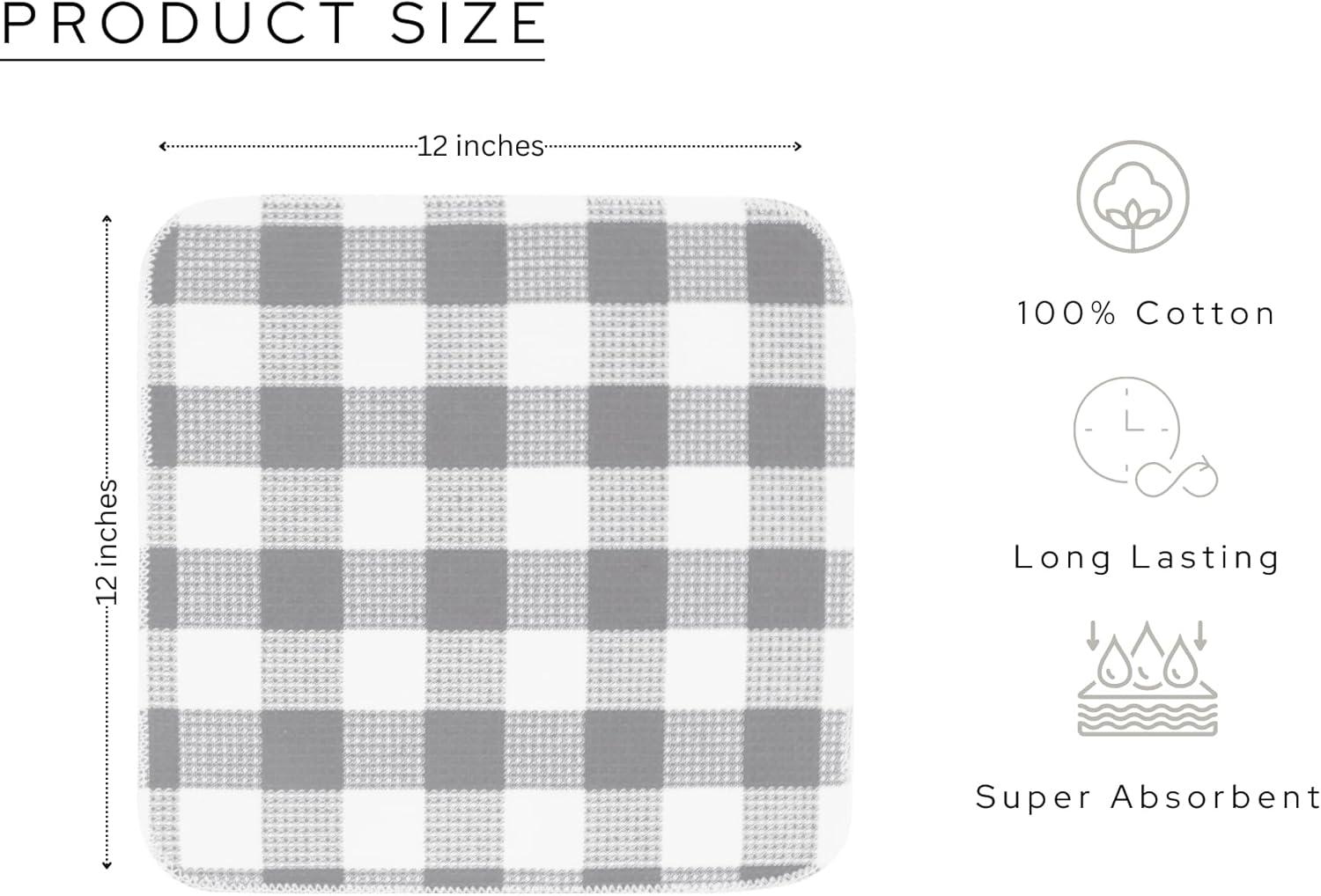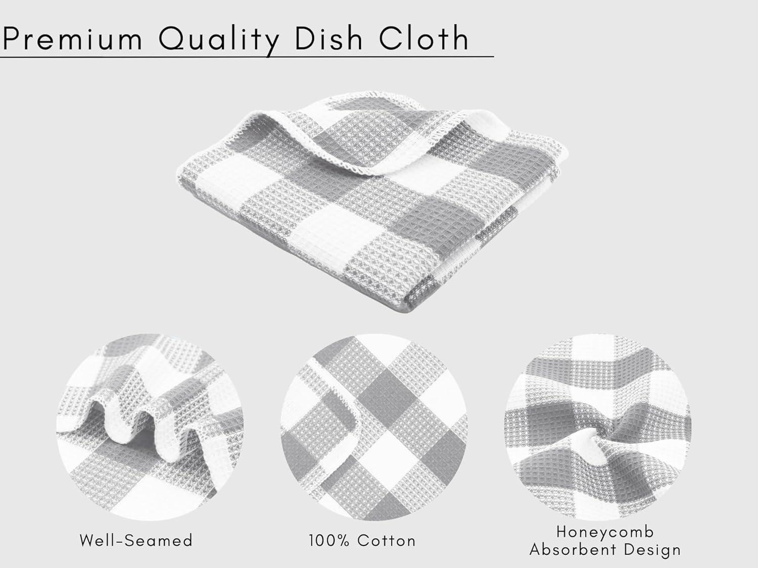 • Waffle Weave Plaid Dish Cloths, 100% Cotton – 12 x 12 Inches, Ultra Soft Absorbent Quick Drying Dish Towels Buffalo Check Dish Rags for Kitchen, 8 Pack – Fall Thanksgiving – Black & White(Steel Grey White)