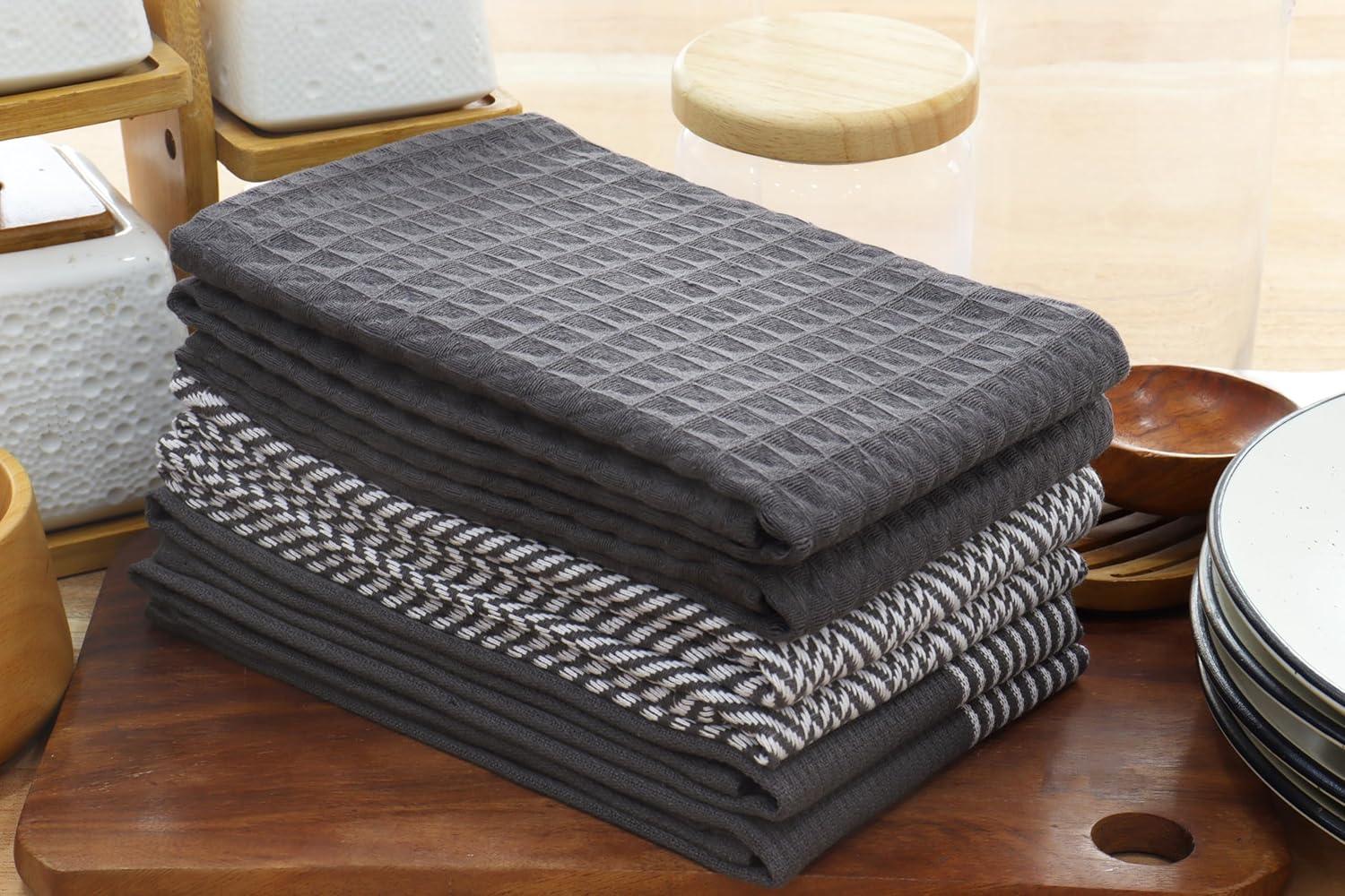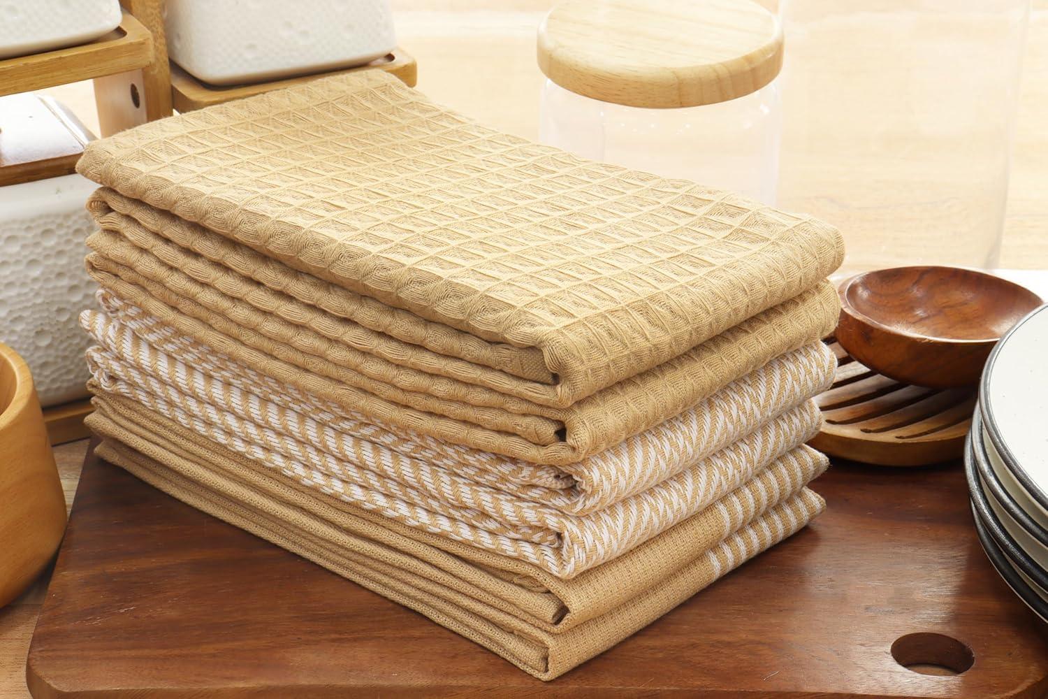 Get up to 70% off on PurpleEssences 6-Pack Kitchen Towels - 15x25 Inch 100% Cotton Waffle Weave - Absorbent, Reusable Dish & Hand Towels with Hanging Loop for Home & Bar Use Fall Thanksgiving - Assorted - Dark Gray(Tan - Assorted) styles during our end-of-season clearance event.