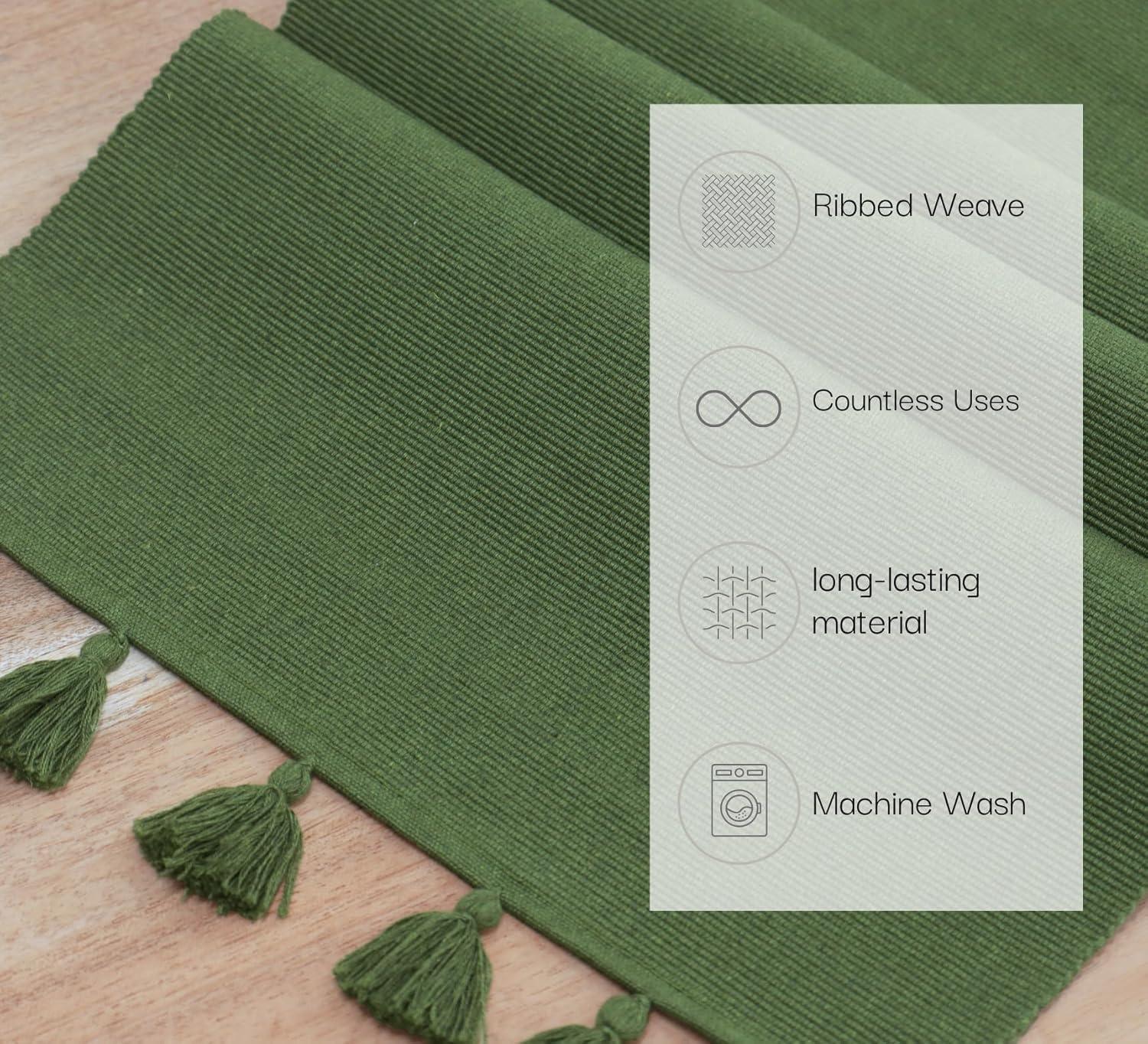 - Don't miss out on our limited-time offer: buy PurpleEssences Solid Ribbed Woven Table Runner with Multi-Tassels Farmhouse Dining Room - Perfect for Every Day and Seasonal Decor - Fall Thanksgiving - 13x90 Inches - Olive Green(Red), get {accessory} 50% off!