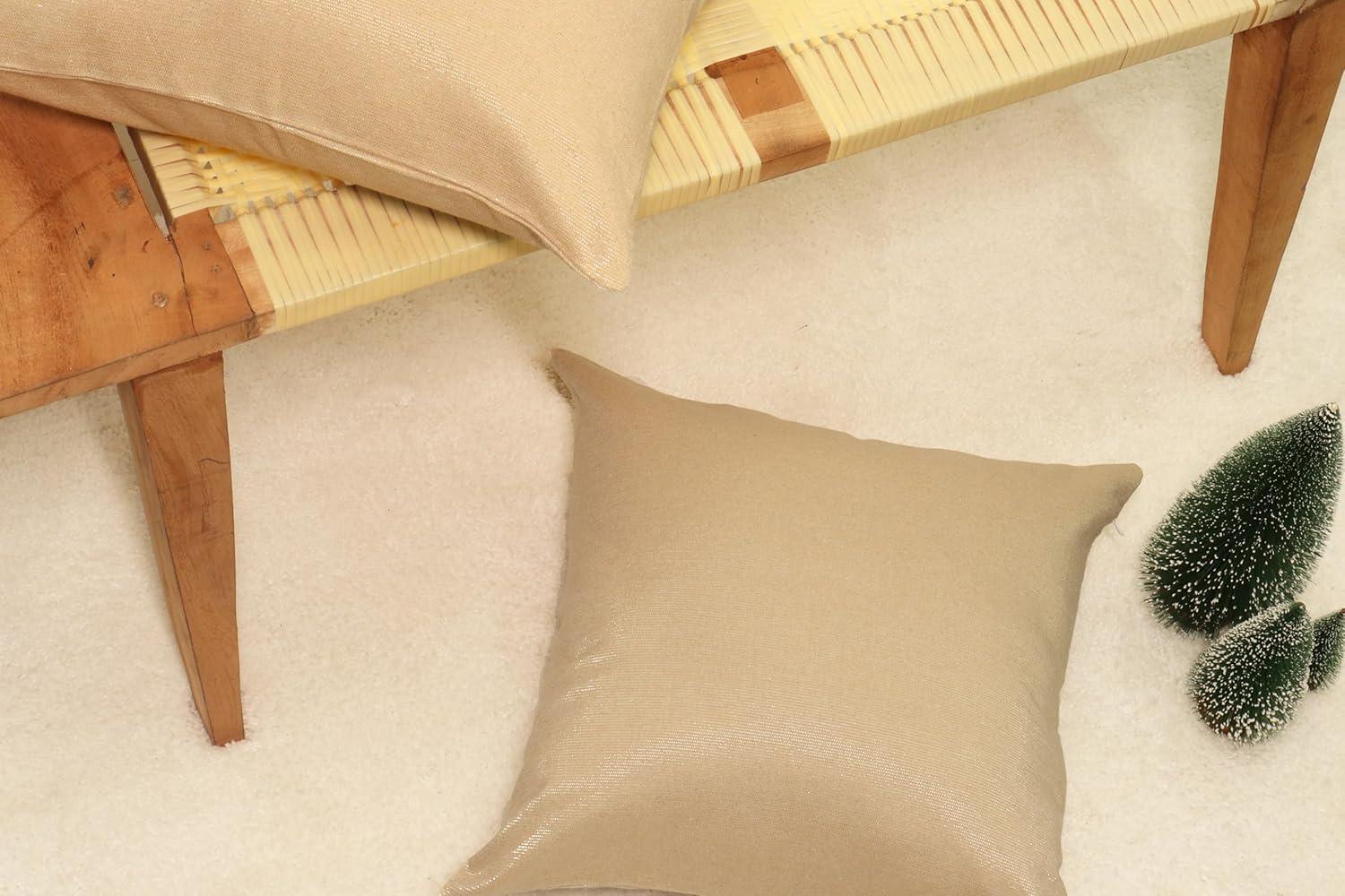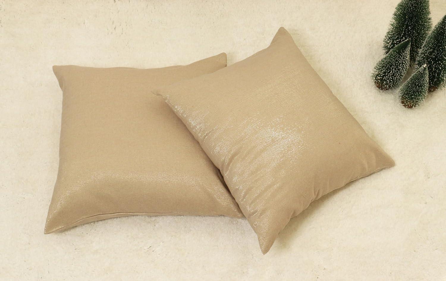 PurpleEssences Christmas Metallic Beige Throw Pillow Covers 18×18 Set of 2 | Decorative Cotton Lurex Metallic Finish Cushion Covers for Sofa Couch Bed | Holiday Winter(Solid-beige)