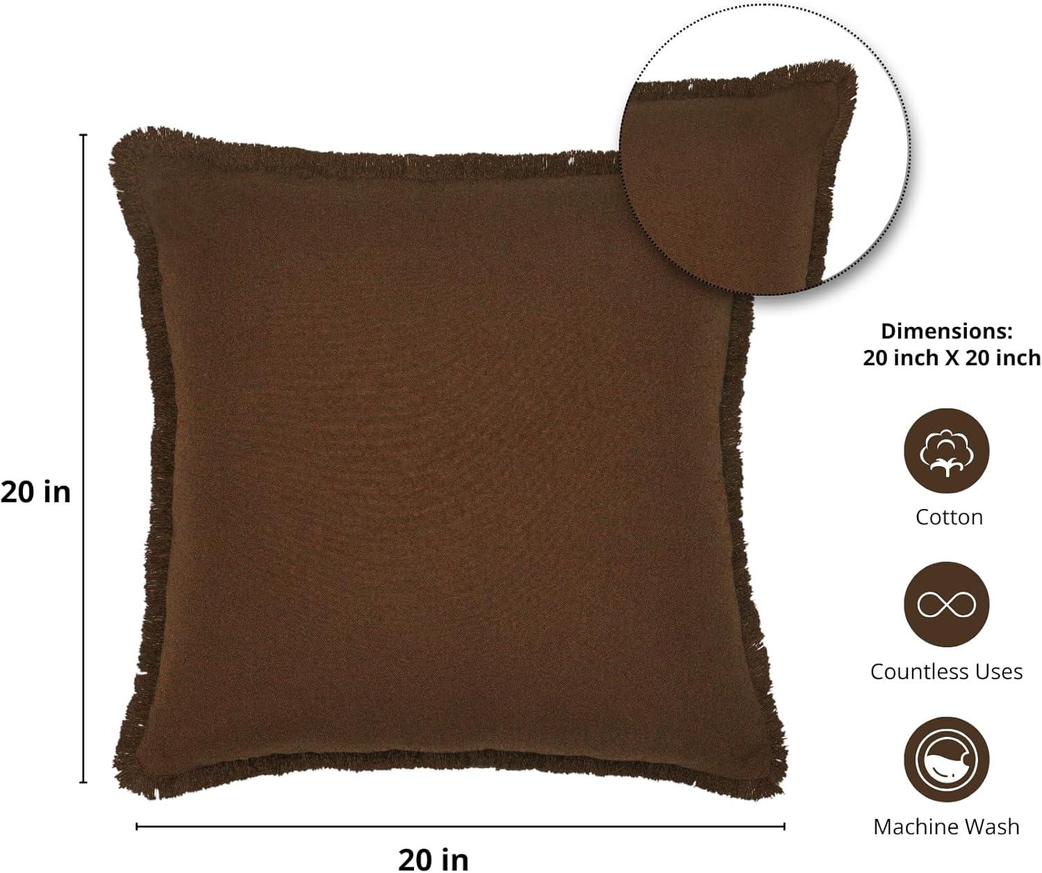PurpleEssences 2 Pack Boho Cotton Fringe Throw Pillow Covers, Decorative Cushion Covers with Tassels for Couch, Sofa, Bed, Farmhouse Home Décor Fall Thanksgiving – Royal Linen(Nut Brown)