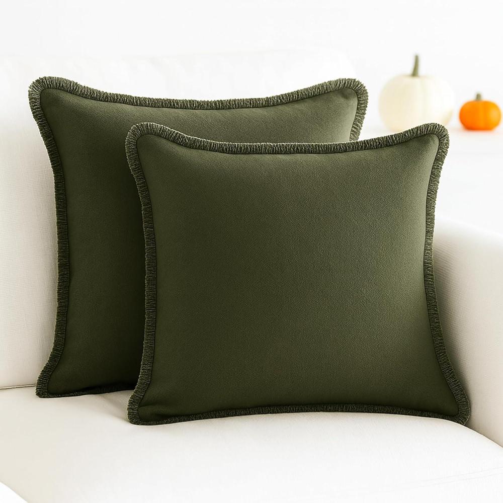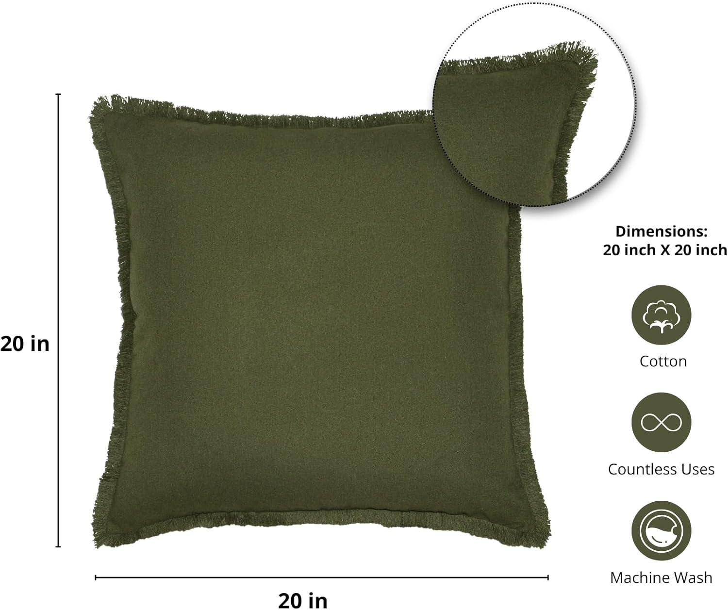 PurpleEssences 2 Pack Boho Cotton Fringe Throw Pillow Covers, Decorative Cushion Covers with Tassels for Couch, Sofa, Bed, Farmhouse Home Décor Fall Thanksgiving – Royal Linen(Olive Green)