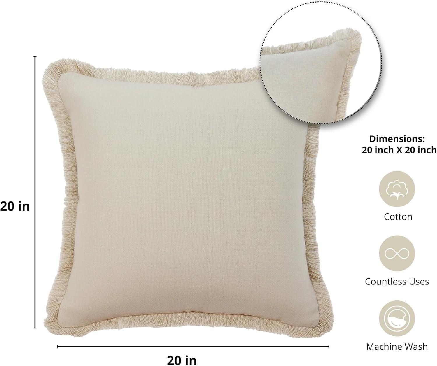 PurpleEssences 2 Pack Boho Cotton Fringe Throw Pillow Covers, Decorative Cushion Covers with Tassels for Couch, Sofa, Bed, Farmhouse Home Décor Fall Thanksgiving – Royal Linen(Royal Linen)