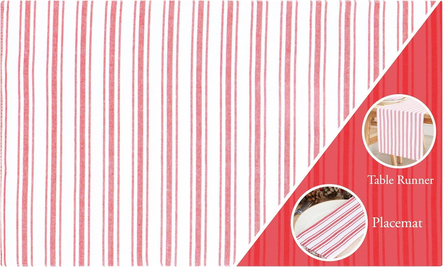 PurpleEssences 4th of July Striped Placemats, Set of 4, Washable Double Layer Woven placemat for Dining Table and Kitchen – 13 x 19 Inch – Labor Day – Red Blue and White(Homestead Stripe – White With Red Stripes)