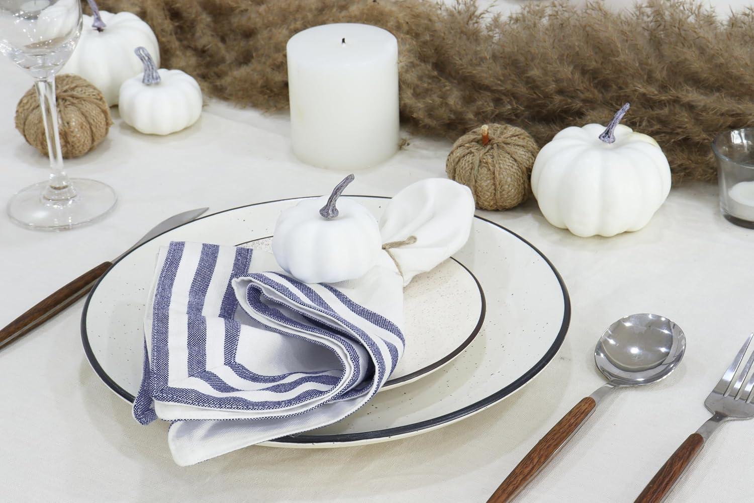PurpleEssences Black and White Cloth Napkins – 18×18 Inch Set of 6-100% Cotton Elegant Hemstitch Dinner Napkins with 1.5″ Stripe Edges, Durable, Washable – Fall Thanksgiving Halloween Table Décor(Blue)