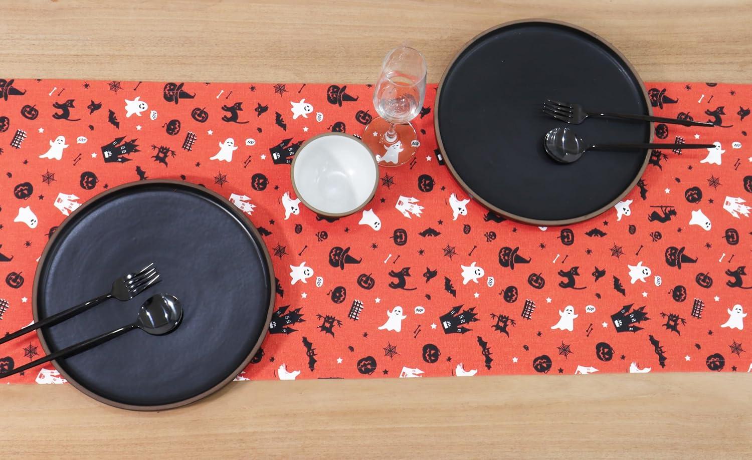 Perfectly Sized Spooky Decor: Measuring 14×72 inches, this dining room table runner fits standard tables with the ideal overhang when laid lengthwise. This orange party table decor adds a refined and eerie touch to your Halloween table setting.