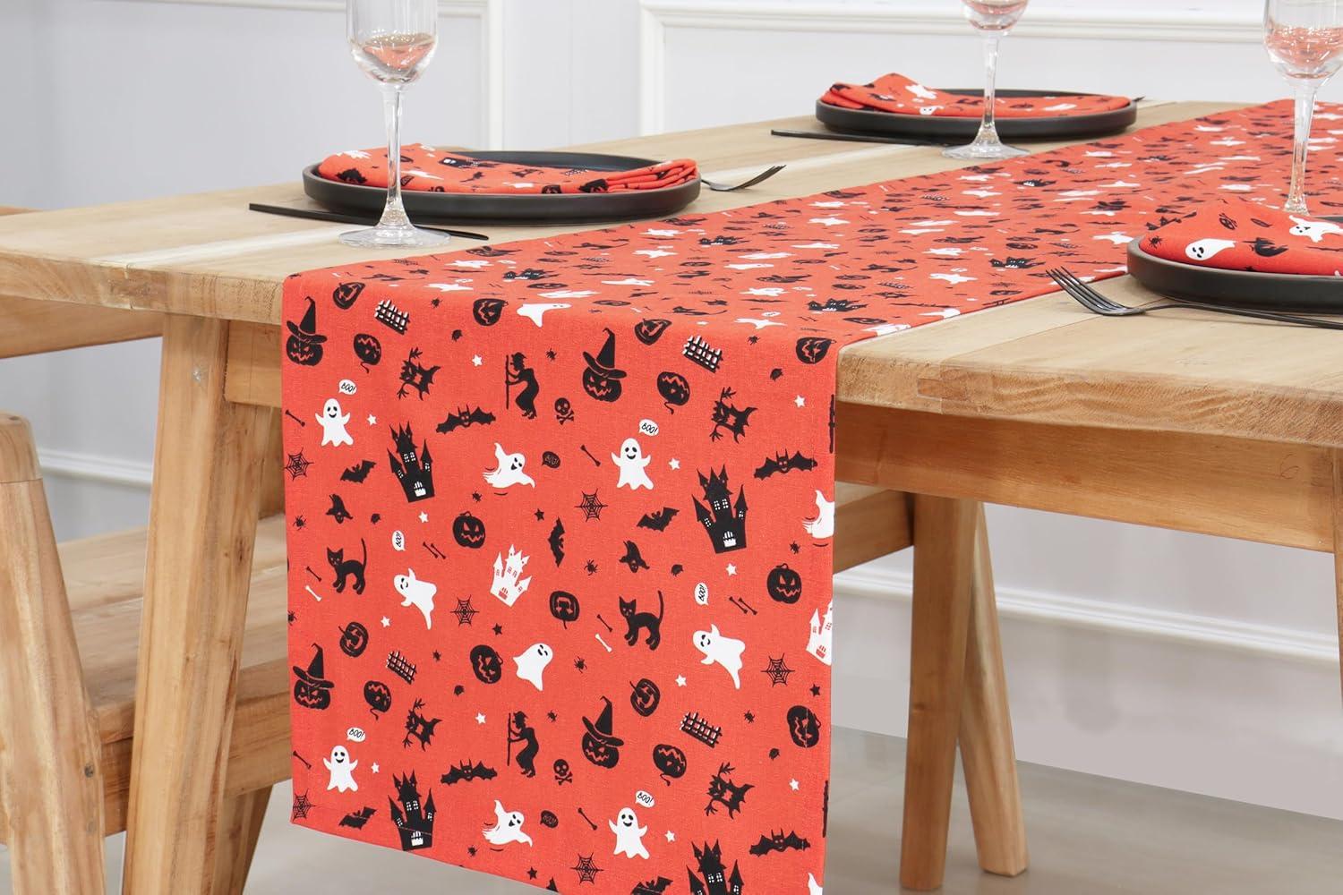 Premium Quality: Crafted from 100% cotton, our Halloween table runners feature a handwoven texture & weight that are perfect for the spooky season. This durable kitchen table runner is a standout piece for your haunted house or Halloween table decor.