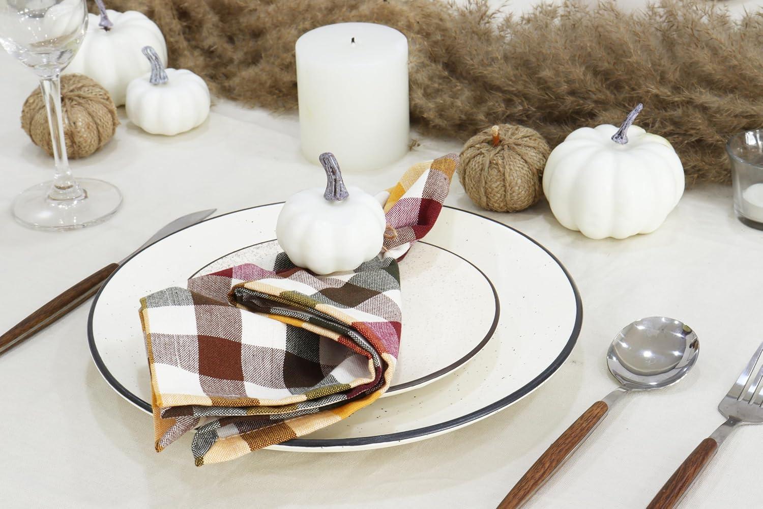 PurpleEssences Buffalo Plaid Cloth Napkins – Mitered Corners – 4th of July Gingham Check Dinner Napkin – Set of 12-100% Cotton – 18×18 Inch – Reusable Washable – Labor Day – Red White Blue(Harvest)