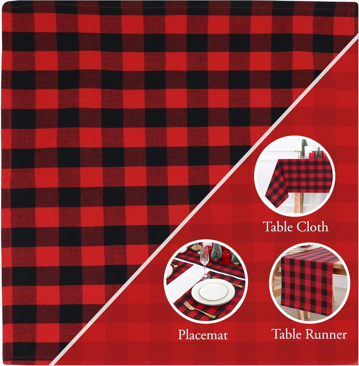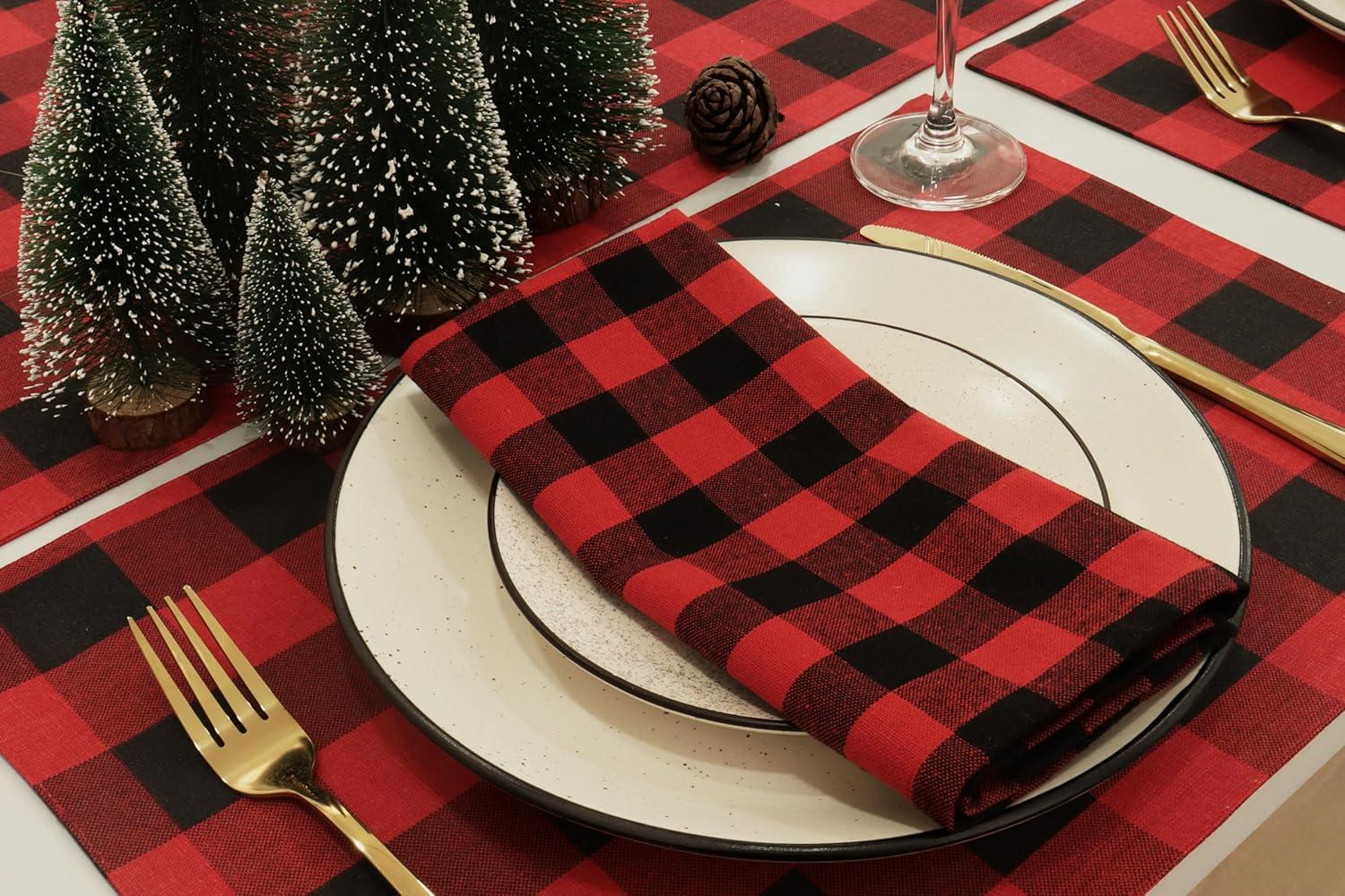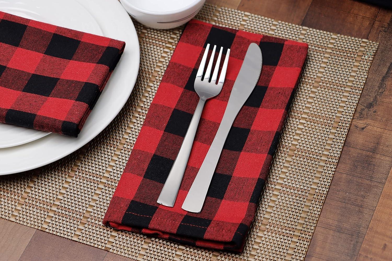 PurpleEssences Buffalo Plaid Cloth Napkins – Mitered Corners – 4th of July Gingham Check Dinner Napkin – Set of 12-100% Cotton – 18×18 Inch – Reusable Washable – Labor Day – Red White Blue(Red Black)