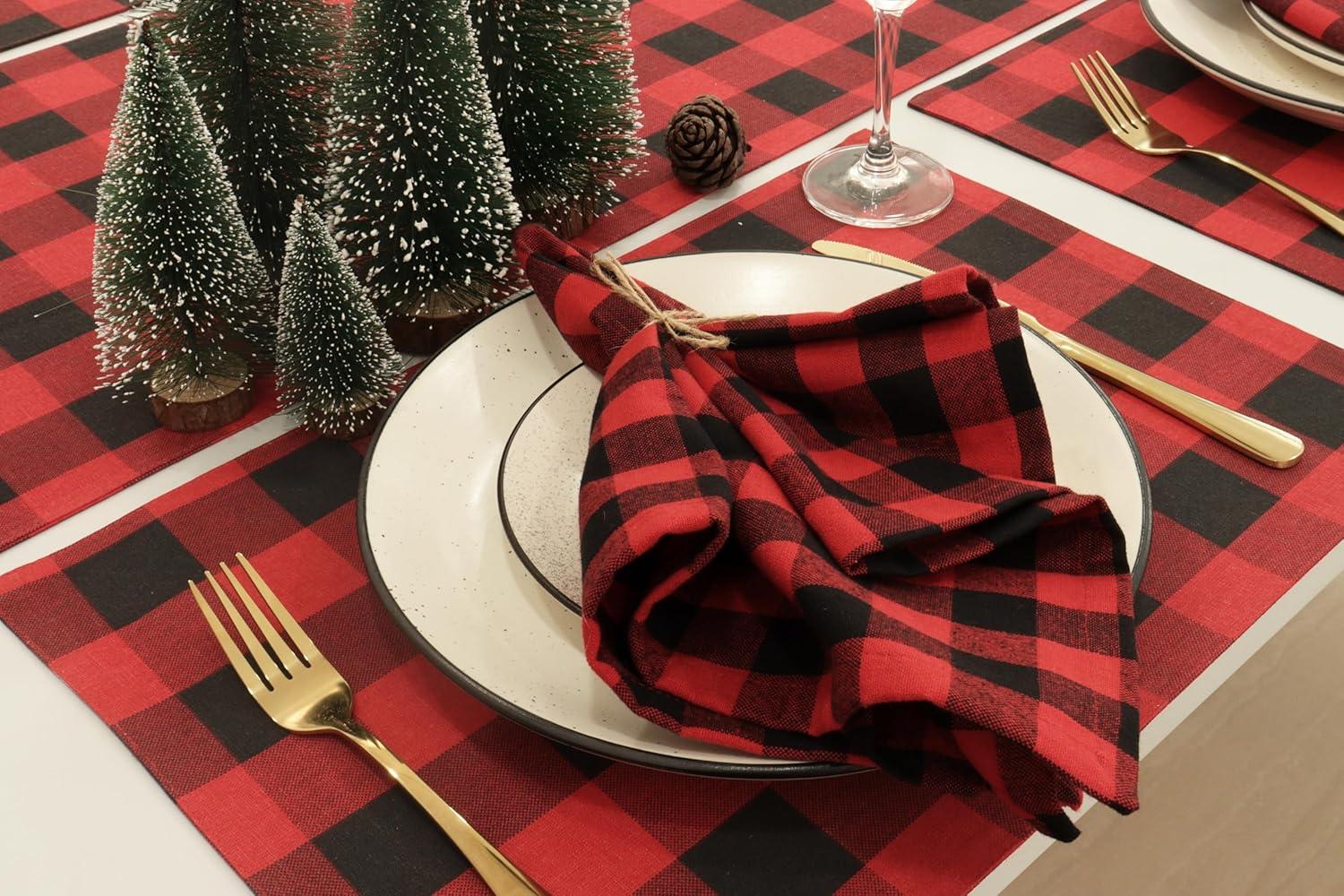 Score big savings on PurpleEssences Buffalo Plaid Cloth Napkins – Mitered Corners – 4th of July Gingham Check Dinner Napkin – Set of 12-100% Cotton – 18×18 Inch – Reusable Washable – Labor Day – Red White Blue(Red Black) during our back-to-school sale. Limited quantities available.