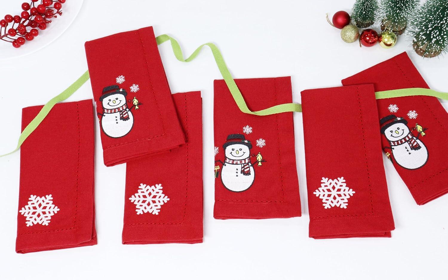 PurpleEssences Christmas Embroidered Hemstitch 100% Cotton Napkin for Holidays, Family Gatherings & Dinner – Set of 6-18×18 inch – Red – Snowflakes(Red – Snowflakes)