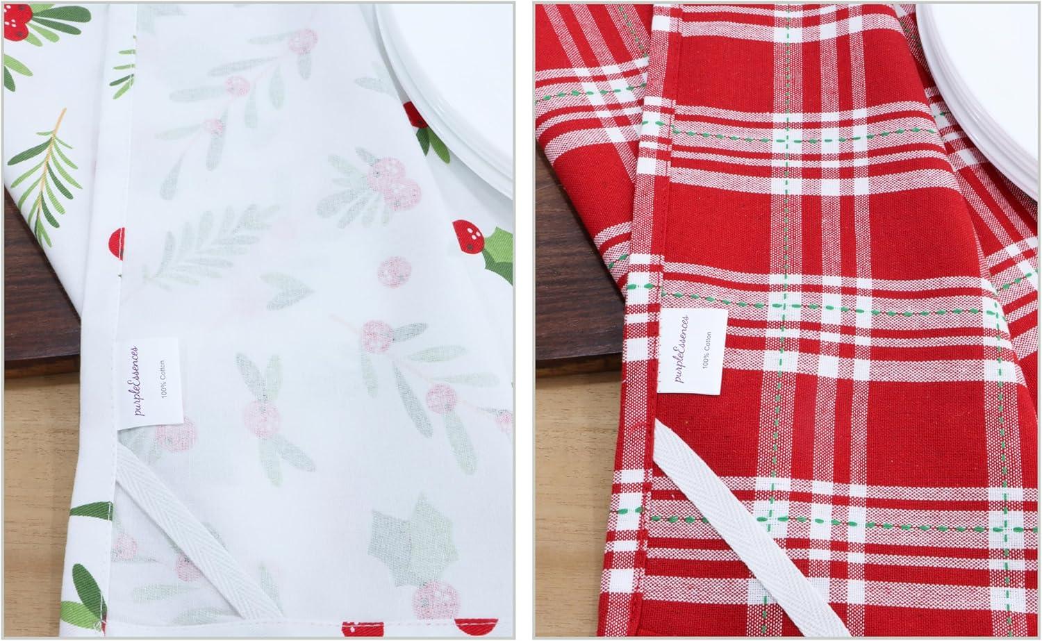 PurpleEssences Christmas Kitchen Towel Set of 2-100% Cotton Tea Towels for Baking, Cleaning, Entertainment & Cooking, Holiday – Snowman and Plaid(Mistletoe and Plaid)