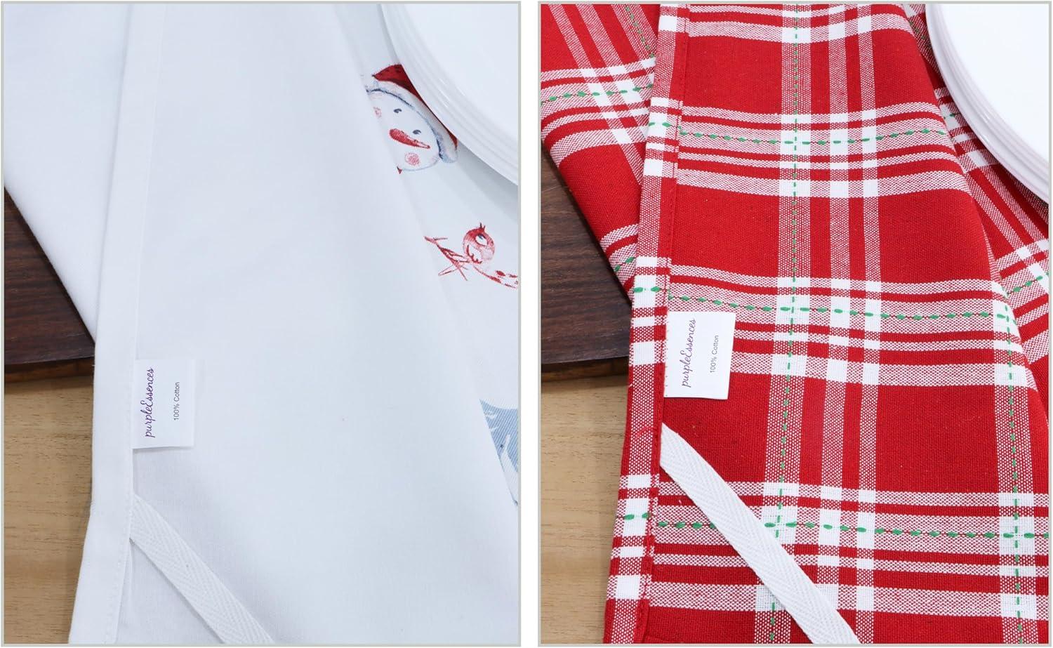 PurpleEssences Christmas Kitchen Towel Set of 2-100% Cotton Tea Towels for Baking, Cleaning, Entertainment & Cooking, Holiday – Snowman and Plaid(Snowman and Plaid)
