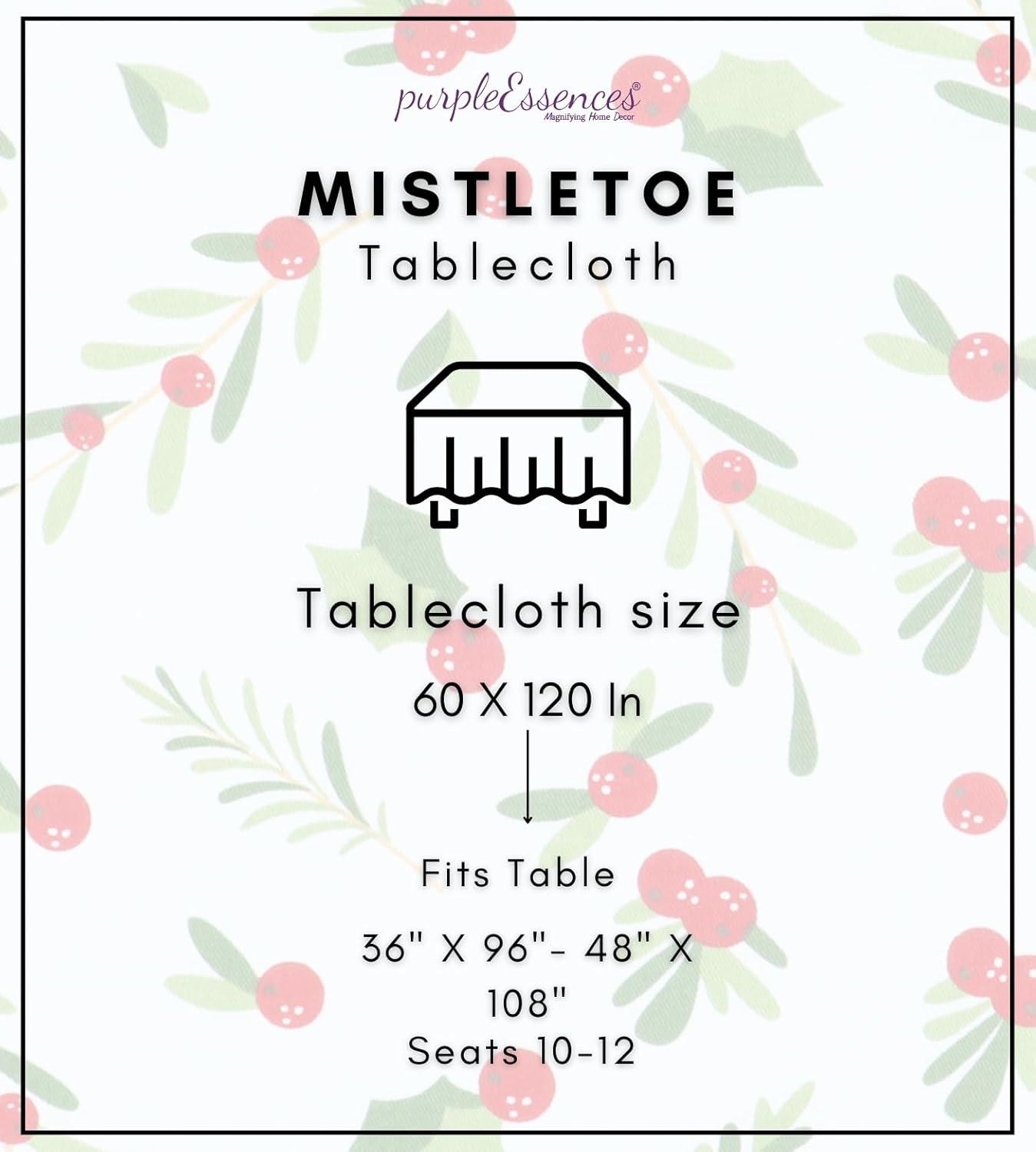 PurpleEssences Christmas Mistletoe Tablecloths – Xmas Tree, Water Resistant 60 x 84 inch Table Cloth Washable Table Cover for Dining Holiday Decor – Red Green and White(Red Green White)