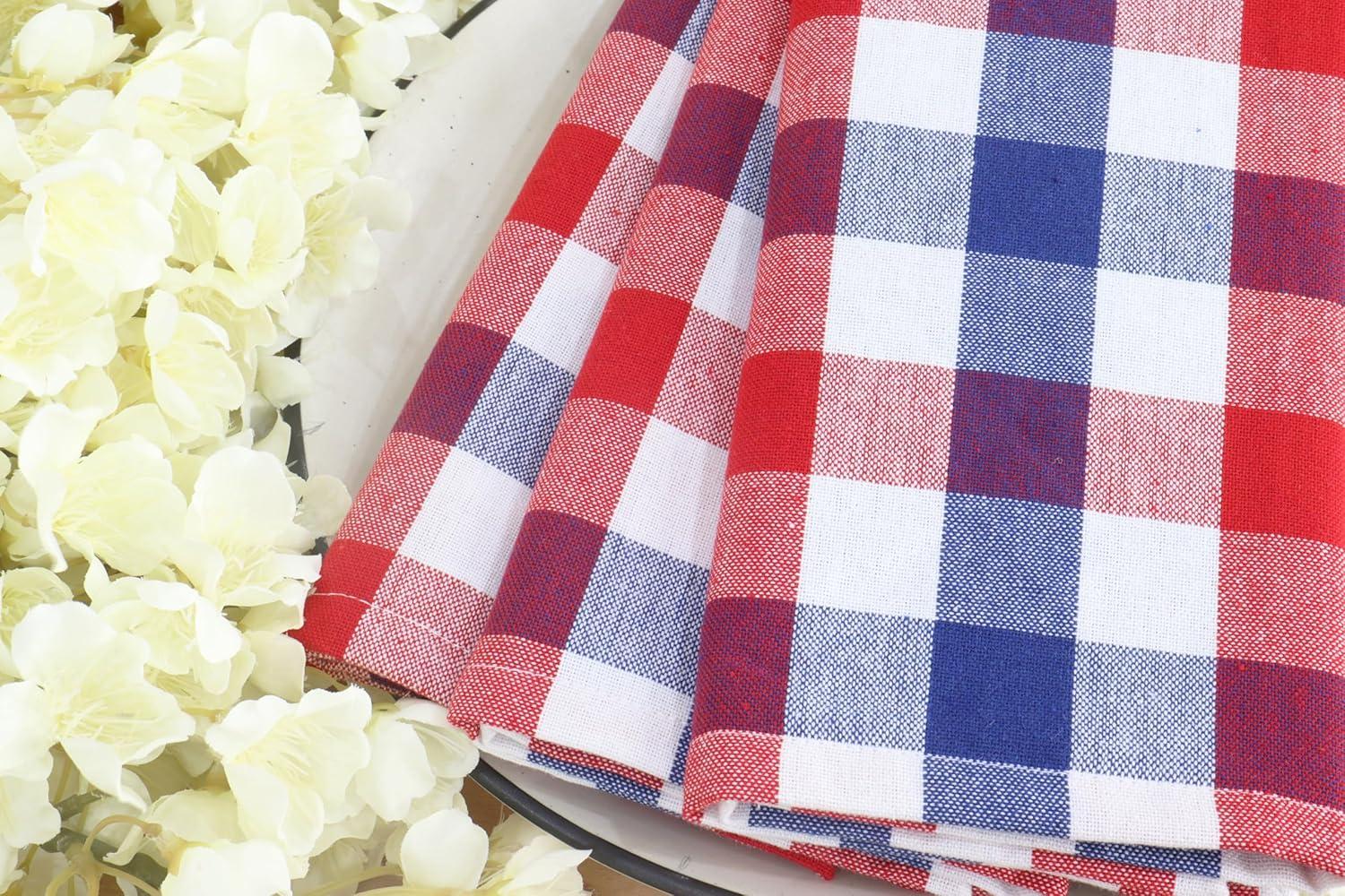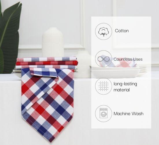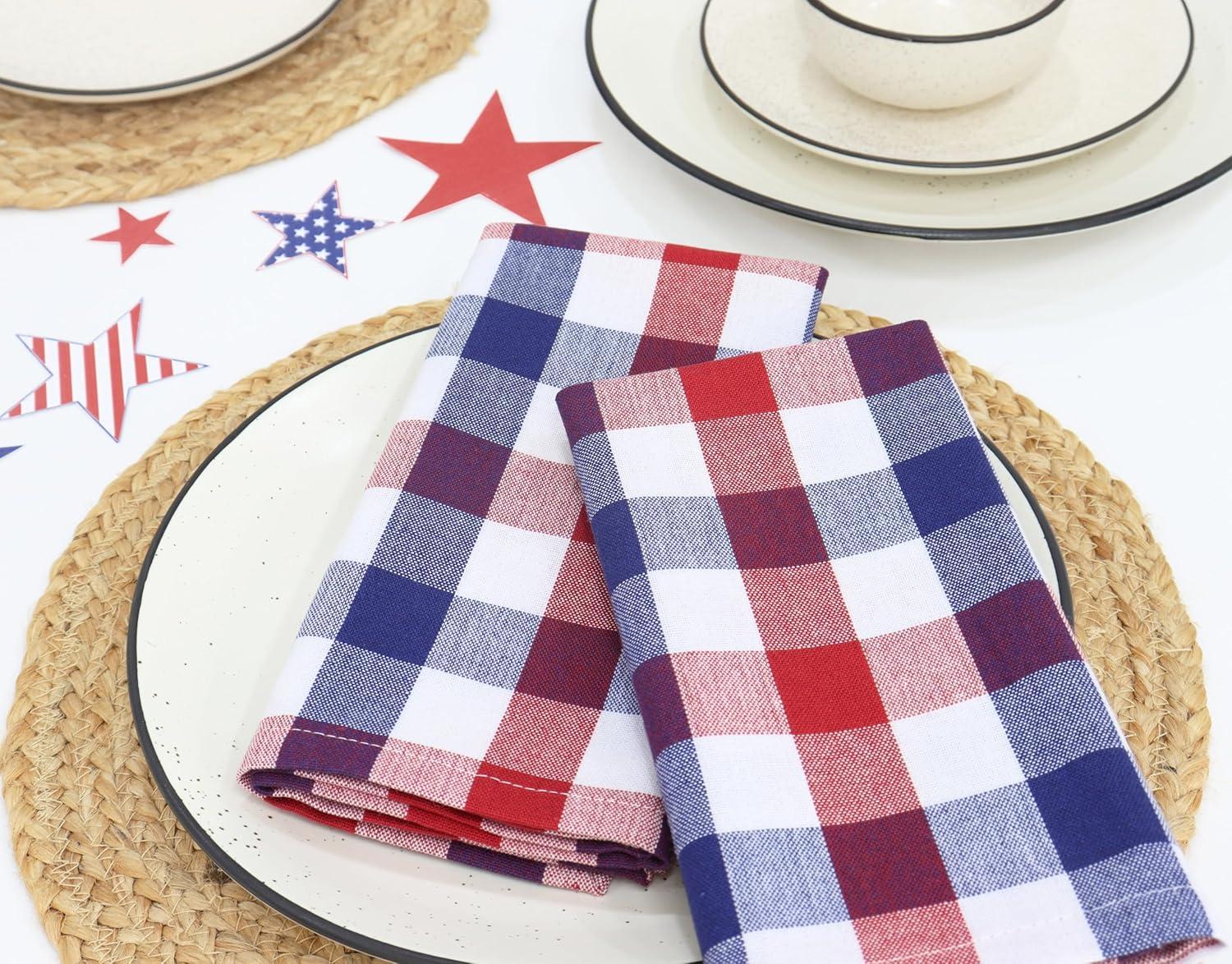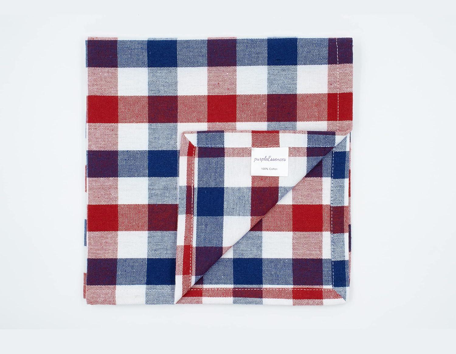 PurpleEssences Christmas Tartan Plaid Napkins -12 Pack 100% Cotton Cloth Napkins Scottish Tartan – Xmas Holiday Winter Festive Celebration Soft Durable Washable – 18×18 Inch – Green(4th of July Red White Blue)