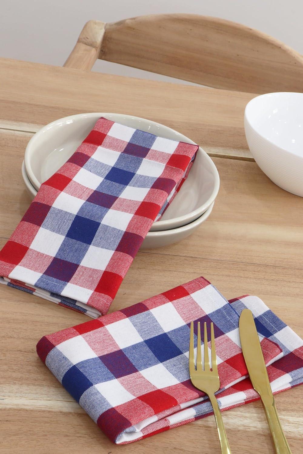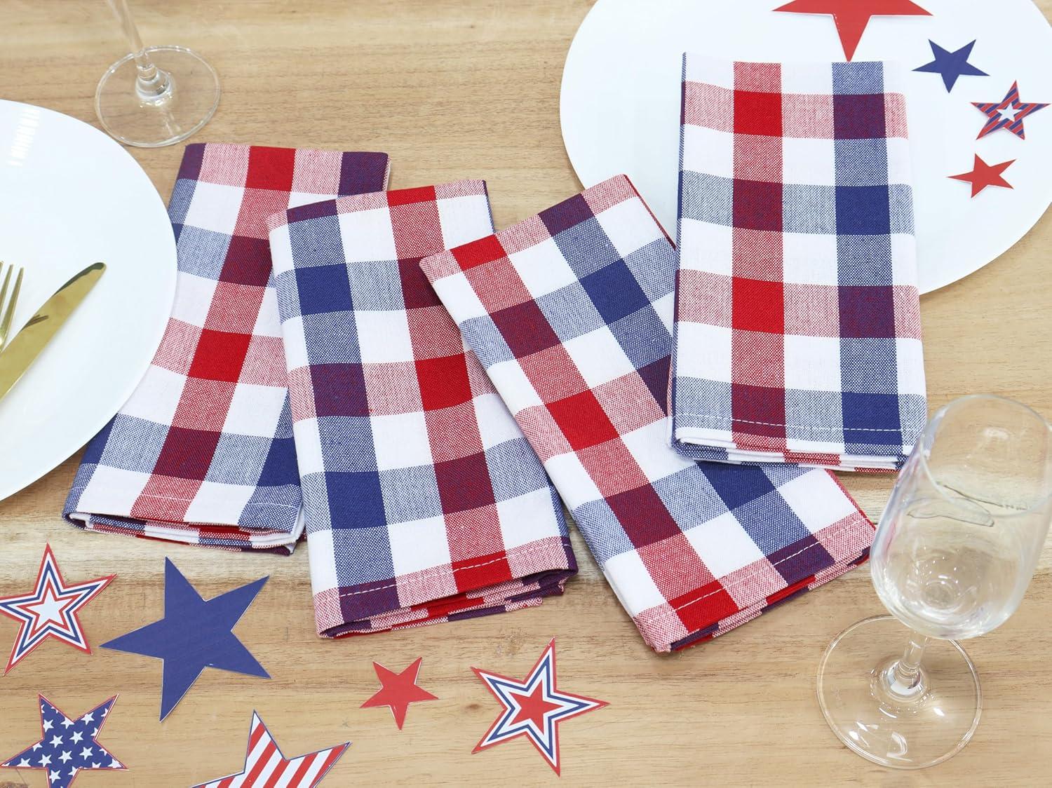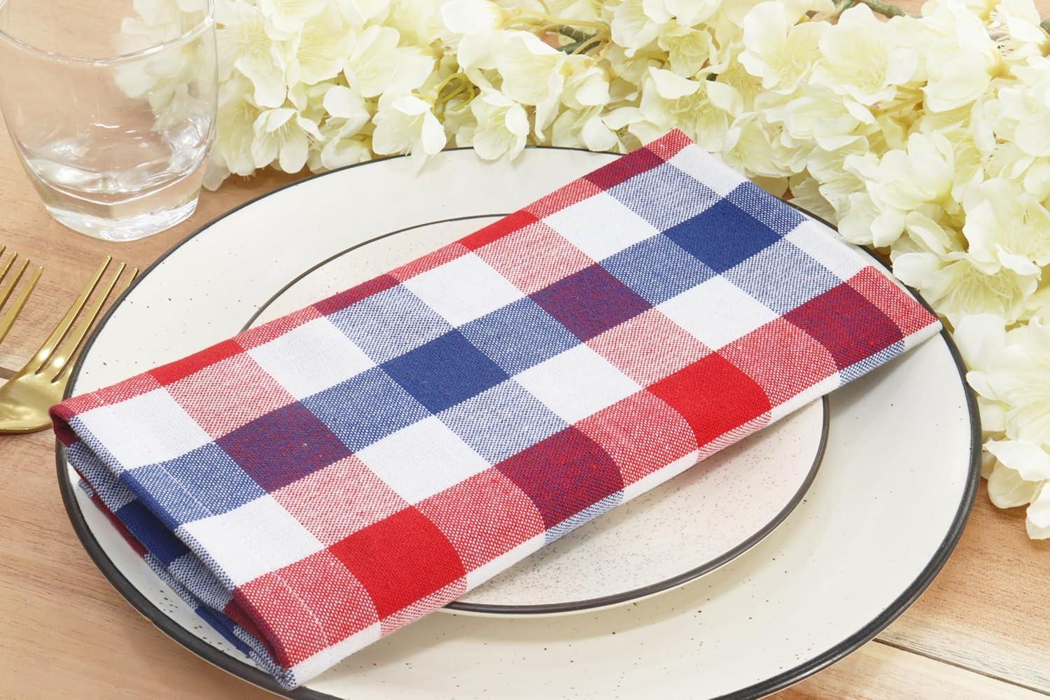PurpleEssences Christmas Tartan Plaid Napkins -12 Pack 100% Cotton Cloth Napkins Scottish Tartan – Xmas Holiday Winter Festive Celebration Soft Durable Washable – 18×18 Inch – Green(4th of July Red White Blue)