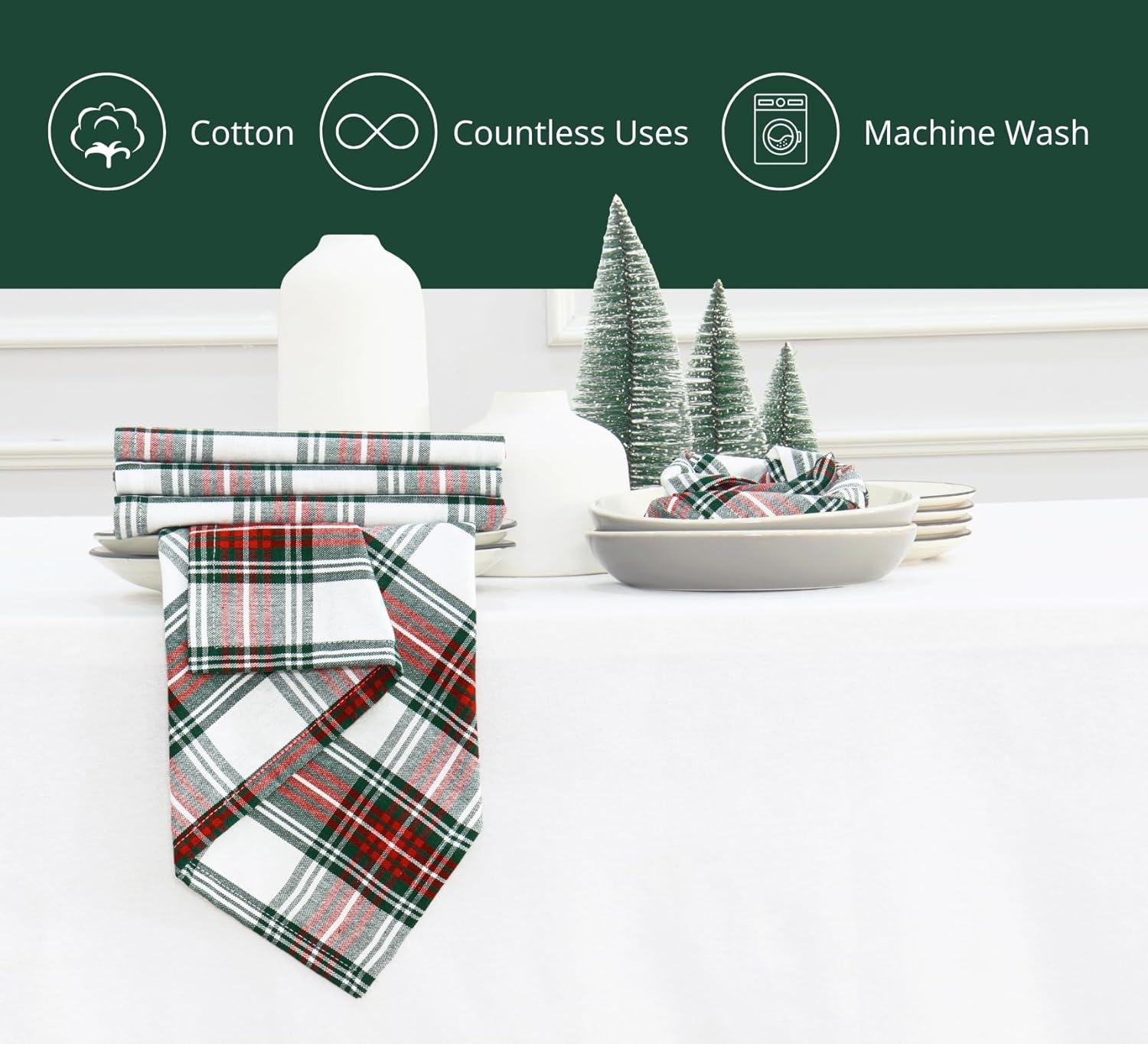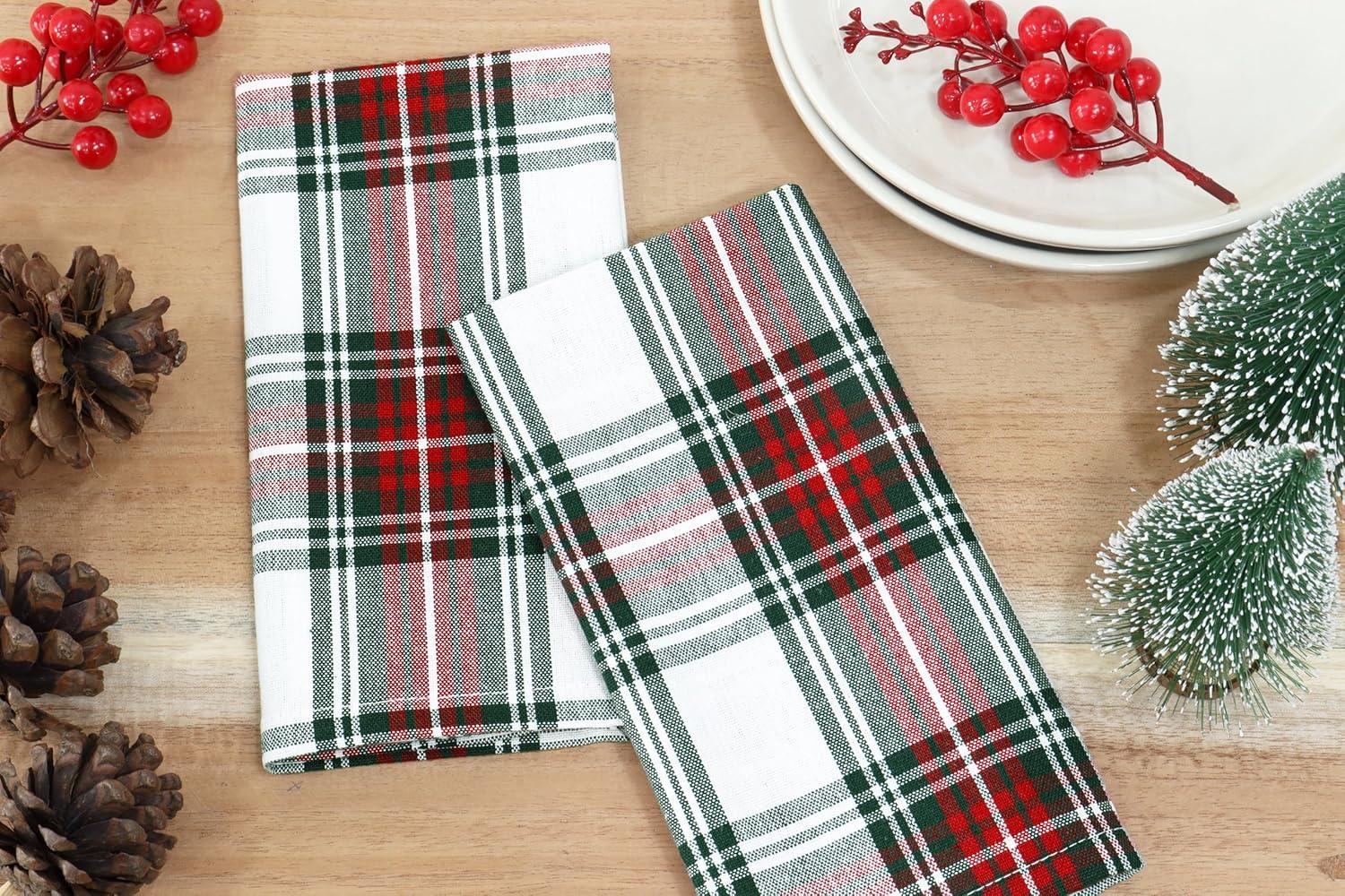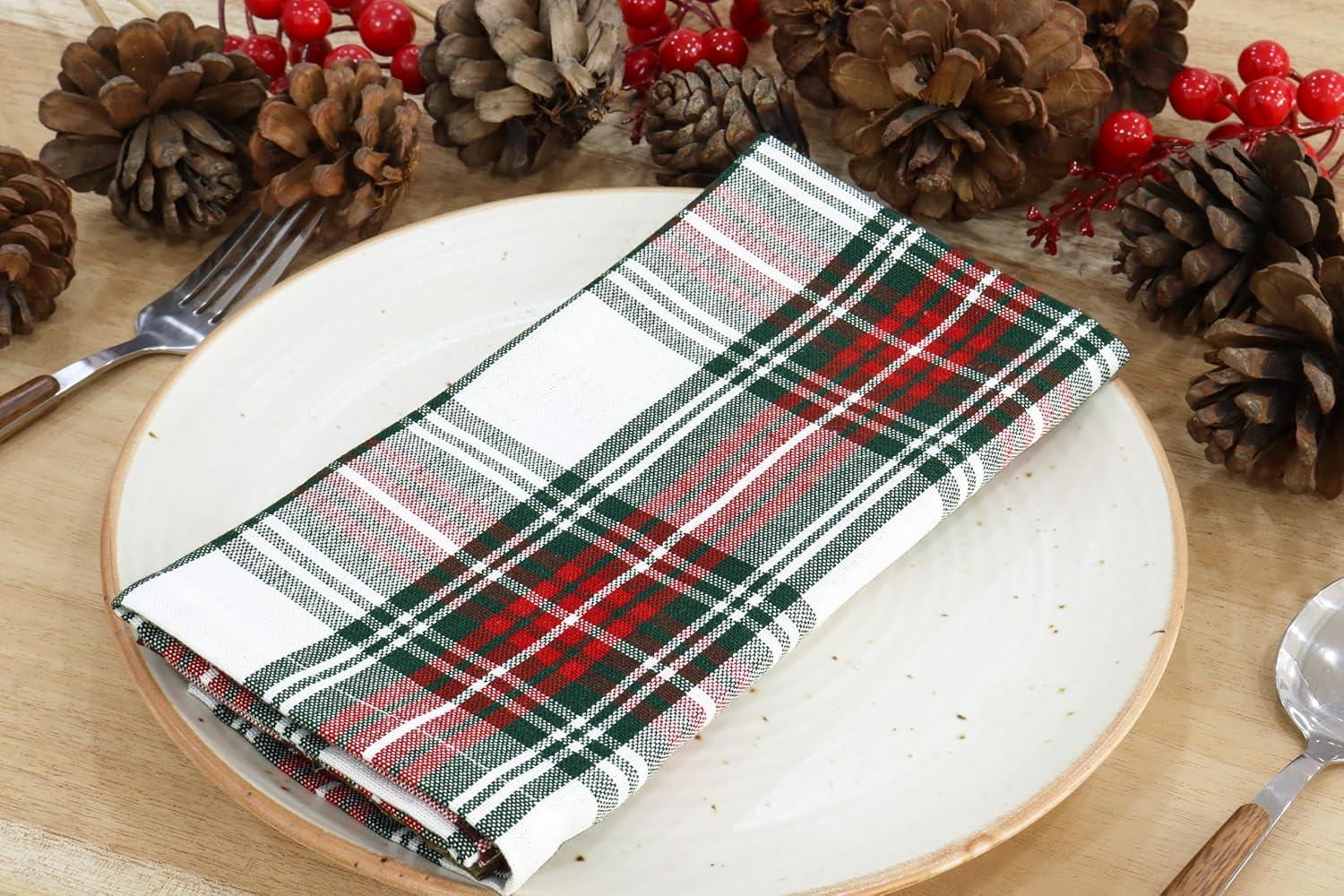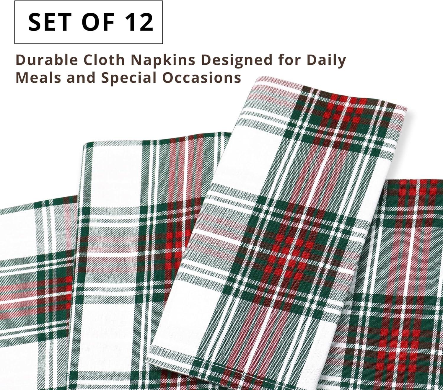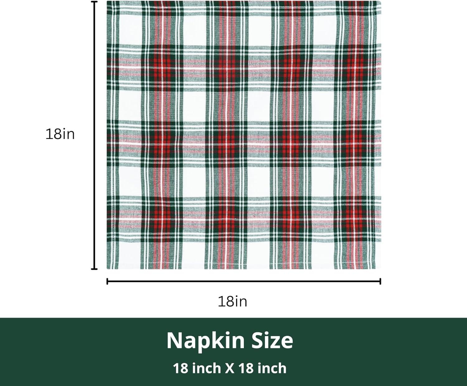 PurpleEssences Christmas Tartan Plaid Napkins -12 Pack 100% Cotton Cloth Napkins Scottish Tartan – Xmas Holiday Winter Festive Celebration Soft Durable Washable – 18×18 Inch – Green(Tartan Plaid Red/White)