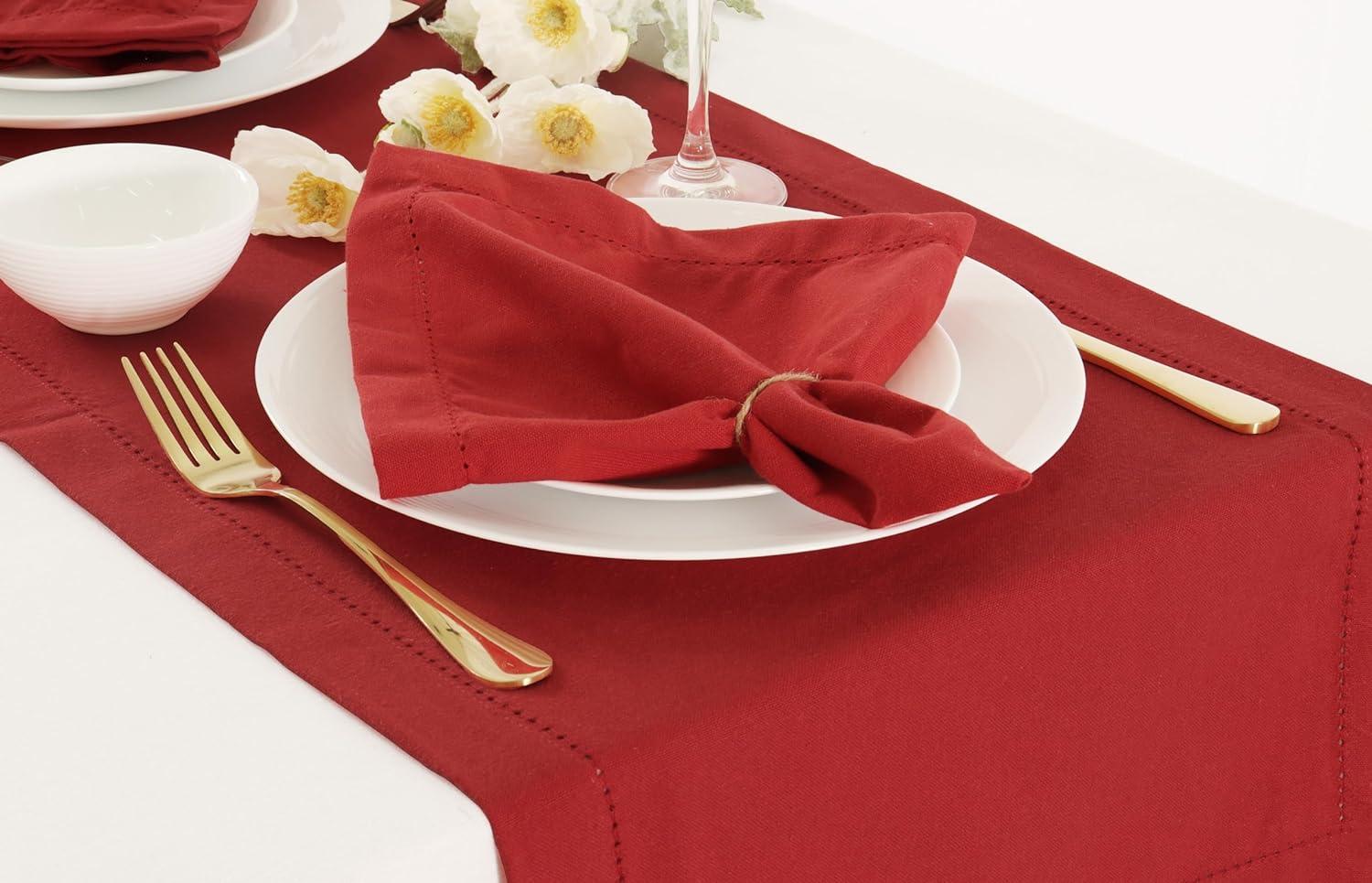 PurpleEssences Cloth Napkins 18 x 18 Inch Set of 12 Solid Napkins and Hemstitch Napkins – Red