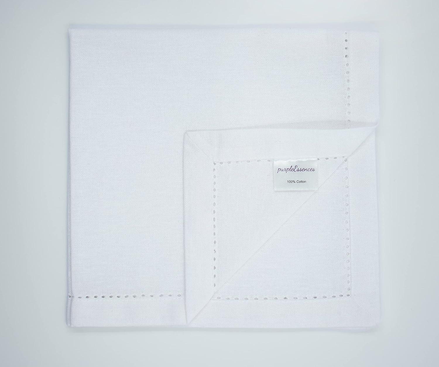 PurpleEssences Cloth Napkins 18 x 18 Inch Set of 12 Solid Napkins and Hemstitch Napkins – White