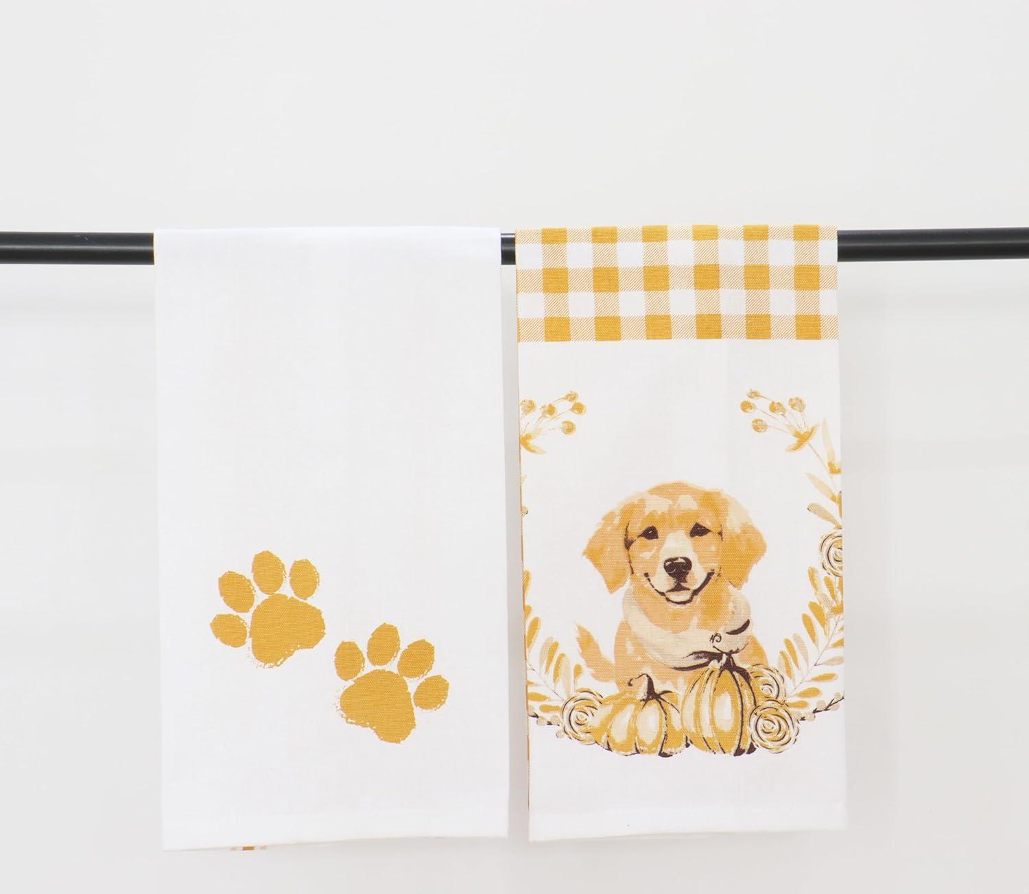 PurpleEssences Cotton Kitchen Towels Set of 2 – Absorbent Dish Towels Set Tea Towels Bar Towels Multipurpose Kitchen Linen, Drying Dish Hand Towels 16 x 28 Inch (Puppy & Paw)(Puppy & Paw)