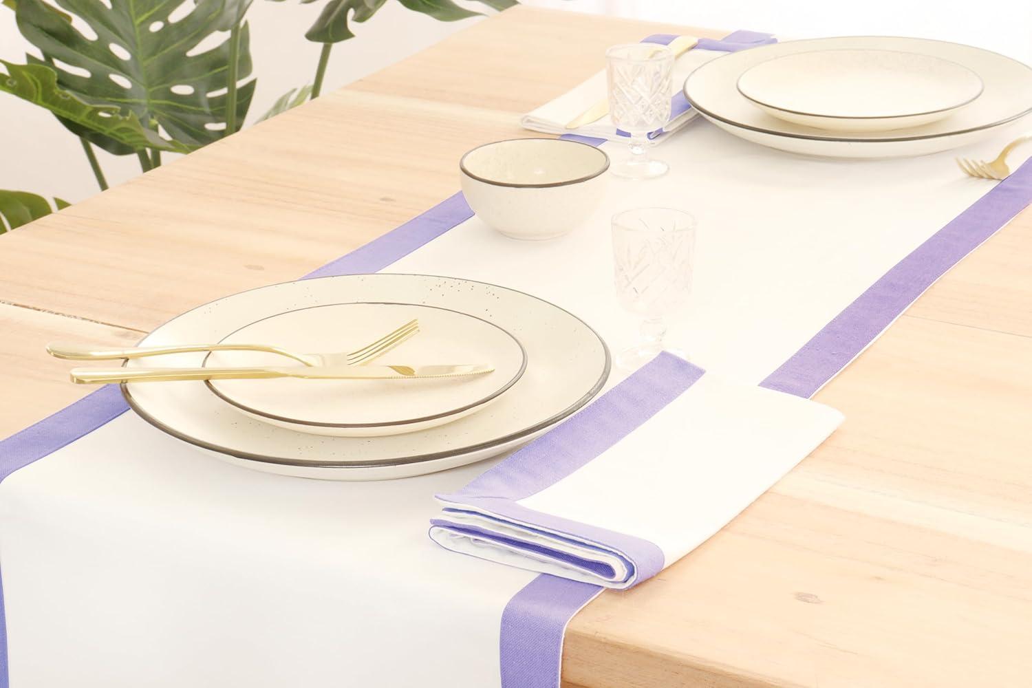 PurpleEssences Dinner Napkins (18 x 18 Inch Set of 6) and Table Runner (14 x72 Inch Set of 1) – 100% Cotton – Solid Edges Lavender