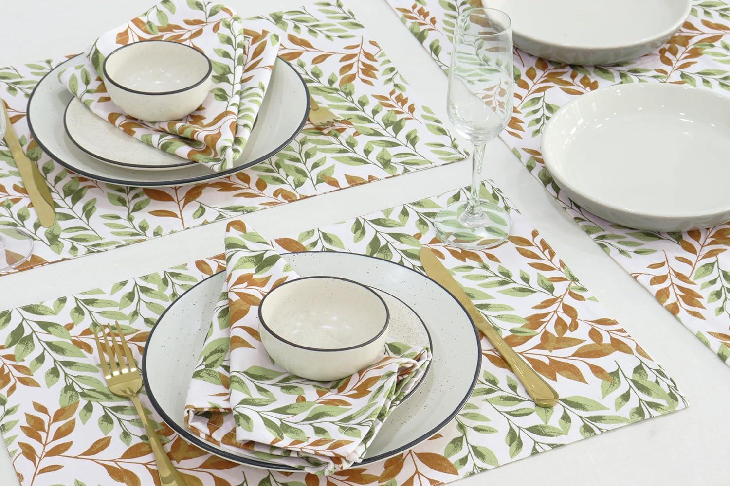 PurpleEssences Fall Harvest Decor Thanksgiving 100% Cotton Napkin (18×18 Inch Set of 6), Table Placemat (13×19 Inch Set of 4) – Sage n Autumn