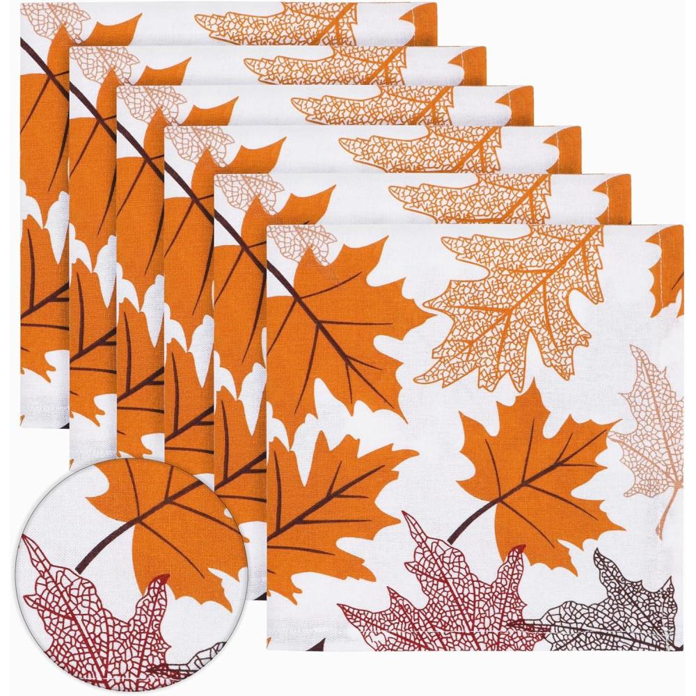 PurpleEssences Fall Harvest Decor Thanksgiving Napkins, 18×18 Fall Cloth Napkins Set of 6, 100% Cotton Autumn Fall Leaves Dinner Napkins for Farmhouse Kitchen, Maple Leaves(Maple Leaves)