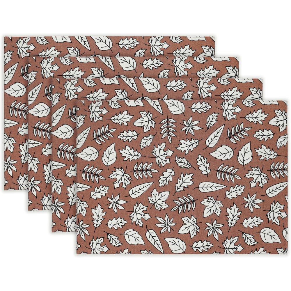 PurpleEssences Fall Placemats – Set of 4, 13×19 Inch – Leaves Design, 100% Cotton, Washable Autumn Table Mats for Thanksgiving, Kitchen, Dining & Party Decor (Sienna Sage, 13 x 19 Inch)(Heap of Autumn)