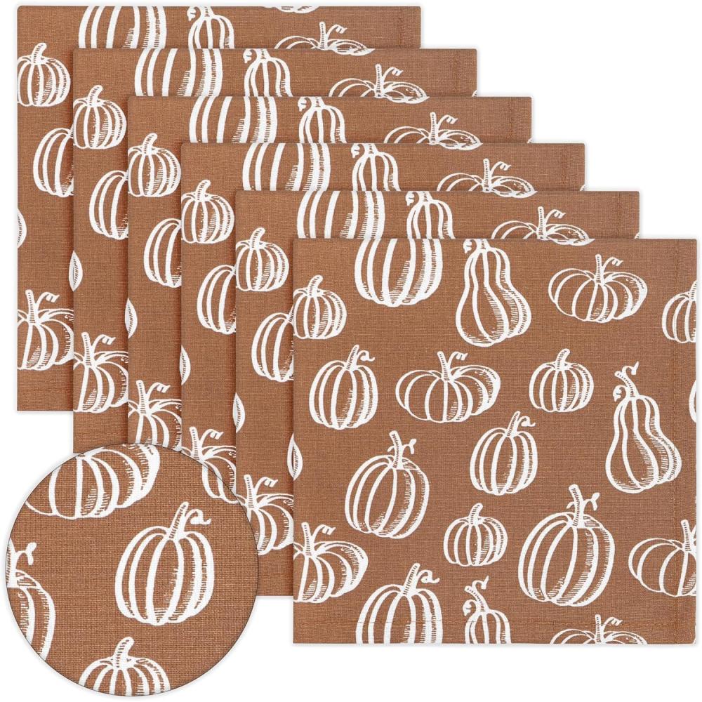 PurpleEssences Fall Pumpkin Harvest Thanksgiving Cloth Napkins 18×18 Inch, Set of 6 – Reusable, Washable Dinner Napkins for Home, Kitchen & Parties – Pumpkin Spice(Harvest)