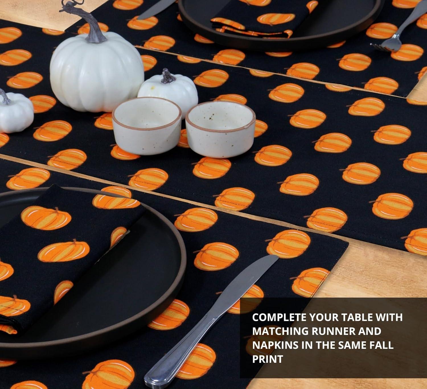 PurpleEssences Fall Pumpkin Placemats – Set of 4, 13×19 Inch, 100% Cotton, Washable Autumn Table Mats for Thanksgiving, Kitchen, Dining & Party Decor – Pumpkin Spice(Halloween Pumpkin)