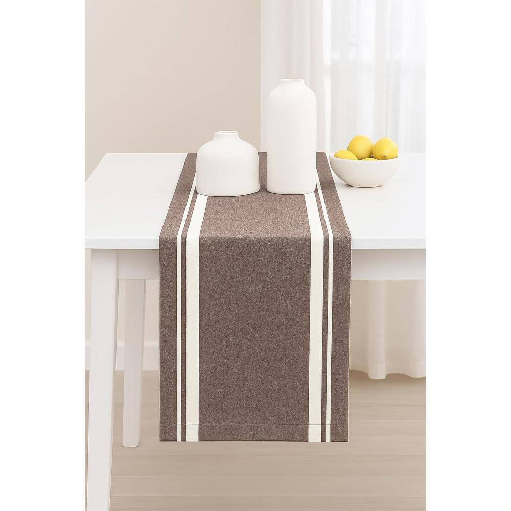 PurpleEssences French Striped Table Runner 72 inches Long Stripe Runner 14 x 72 Inch 100% Cotton – Durable Washable Fabric for Fall Thanksgiving – H.White and Nut Brown(French Stripe – H.White/Nut Brown)