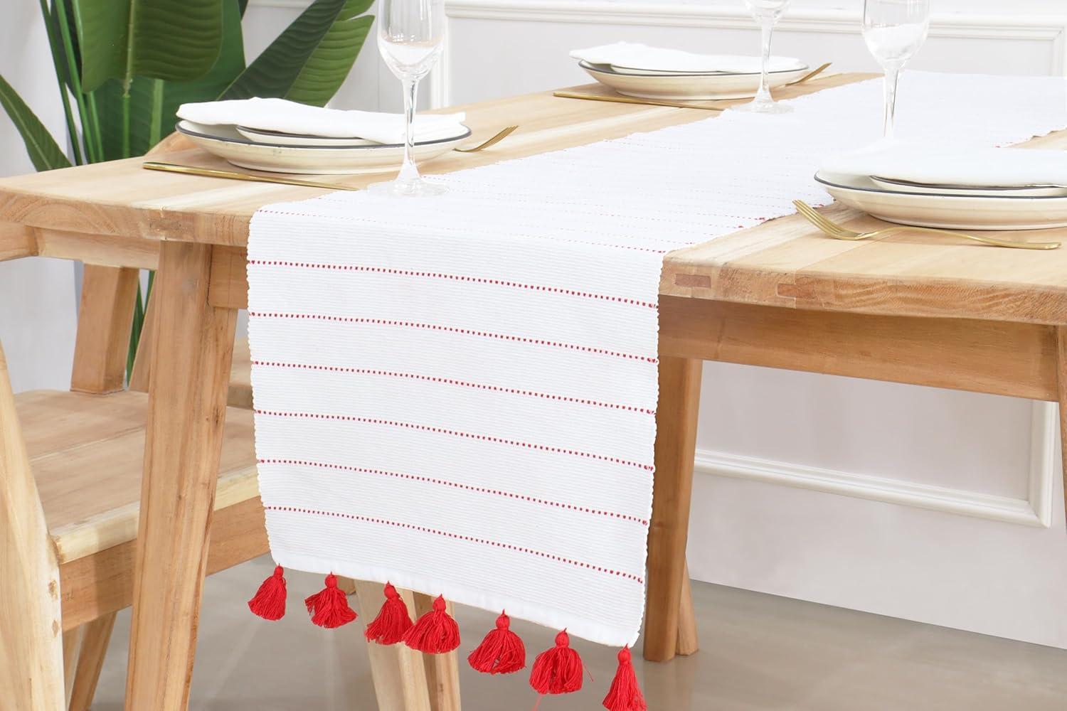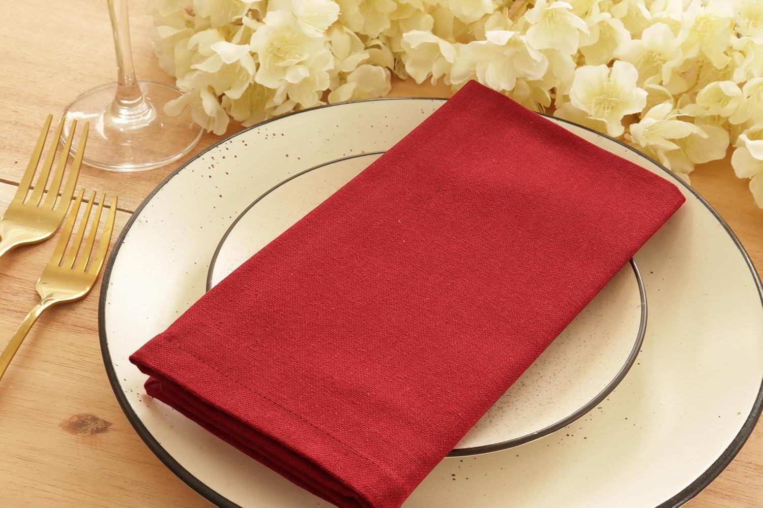 PurpleEssences Pure Cotton Dinner Napkins: Elevate your dining with our set of 12 premium 100% cotton napkins, each measuring 18×18 inches. Solid Color Elegance: 100% cotton fabric offers both tactile delight and visual appeal on your table. Enhance your dining experience with our 100% cotton table runner. Crafted entirely from cotton. For care, machine wash in cold water on a gentle cycle, lay flat to dry, and use a low iron if needed. Note that cotton may shrink. Our colorfast ribbed Dobby stripe table runner is designed to make your dinnerware pop, offering a stylish statement. Available in various colors, it's easy to mix and match to suit any decor.