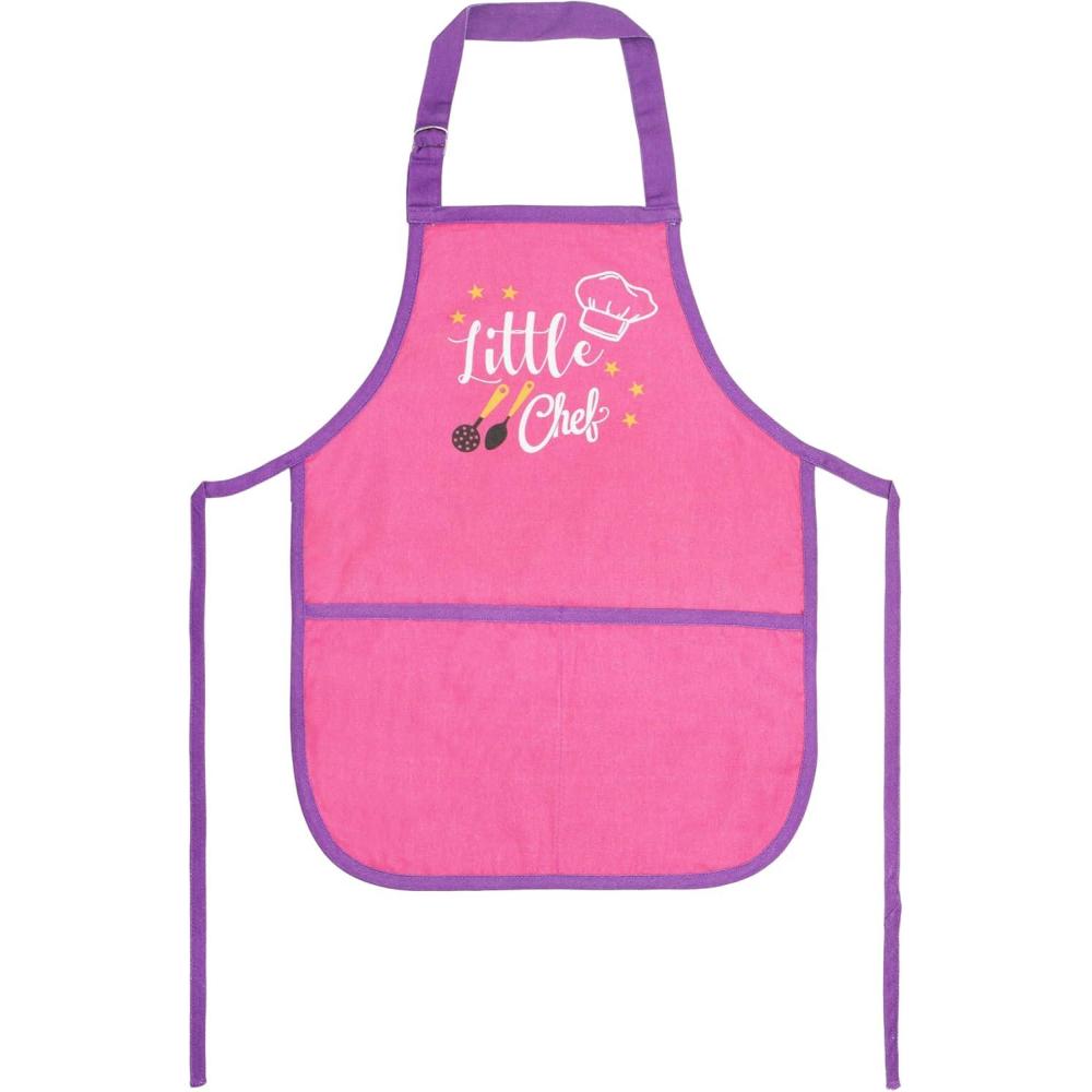 PurpleEssences Kids Apron With Adjustable Neck Strap & Front Pocket, Little Chef Apron for Baking & Crafts, 15×18 in, Cotton(Little Chef Pink)