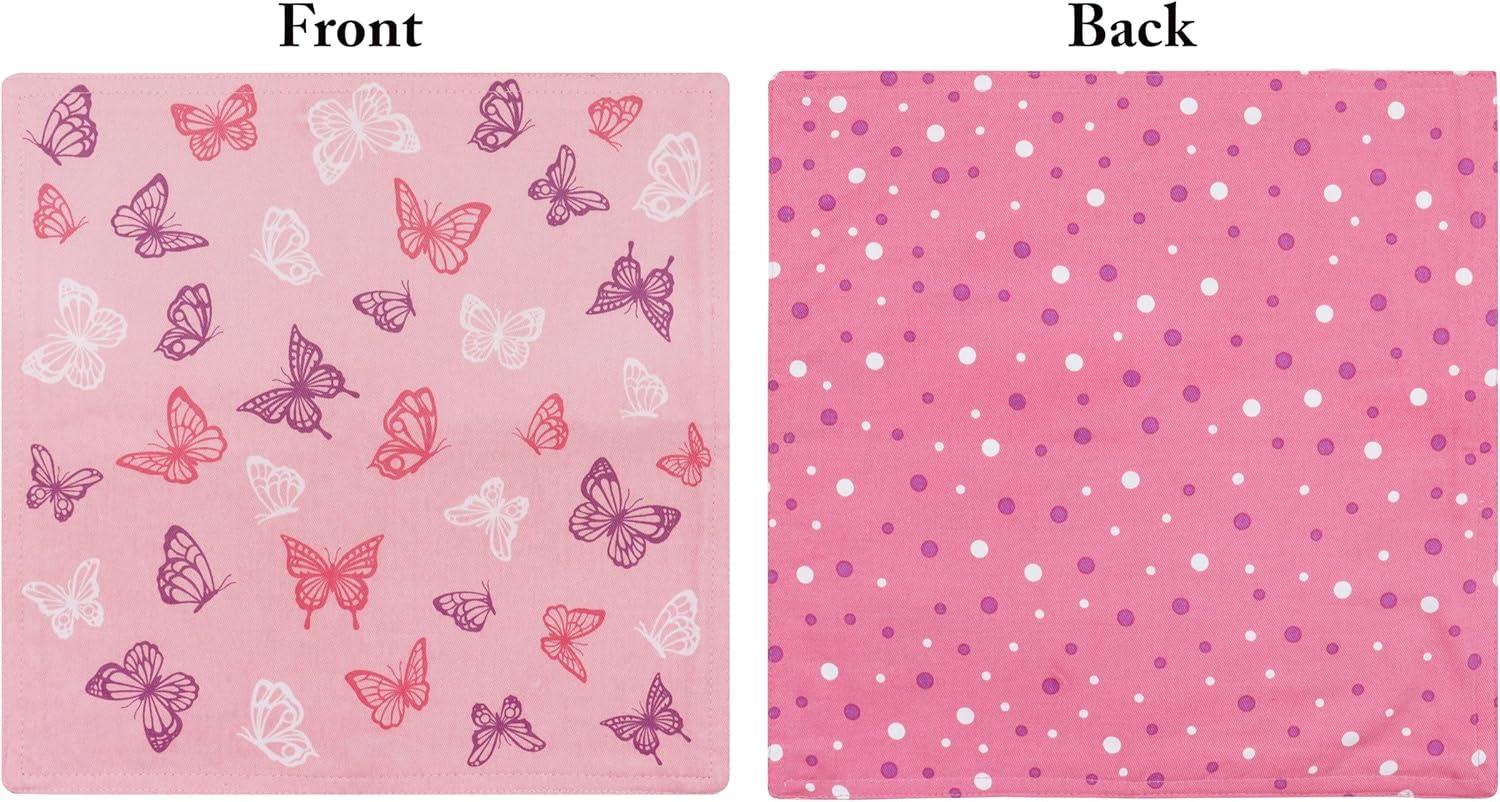 PurpleEssences Kids Reusable Cloth Napkins | 2-Ply, Reversible | Thick, Absorbent Cotton | Set of 2, 12”x12” | Ideal for Lunch – Butterfly(Butterfly)