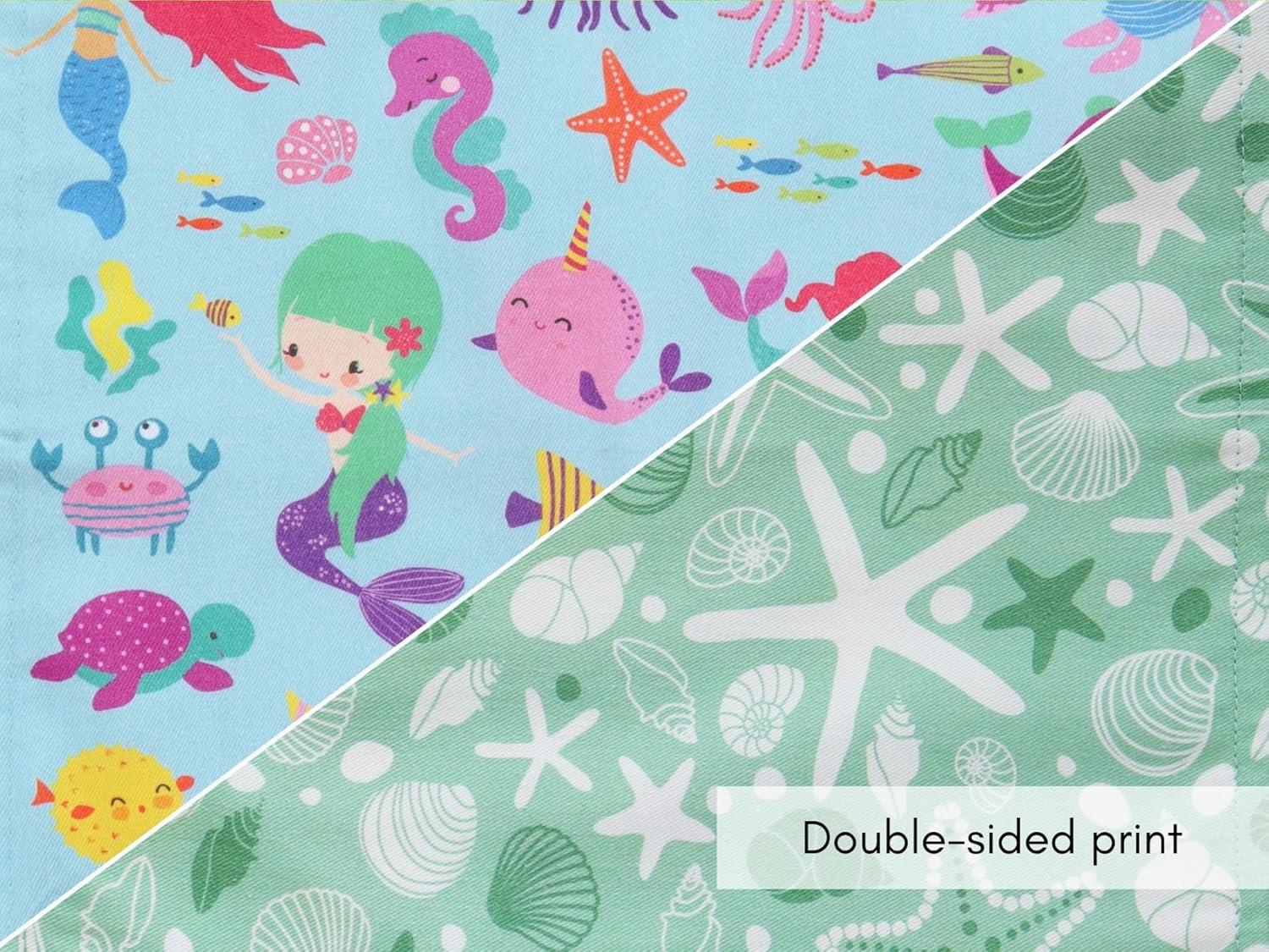PurpleEssences Kids Reusable Cloth Napkins | 2-Ply, Reversible | Thick, Absorbent Cotton | Set of 2, 12”x12” | Ideal for Lunch – Butterfly(Mermaid)