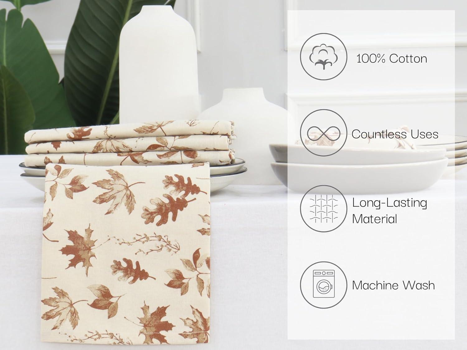 PurpleEssences Maple Leaves Fall Harvest Decor Thanksgiving 100% Cotton Napkin (18×18 Inch Set of 6), Table Runner (14×90 Inch Pack of 1) – Aurelia