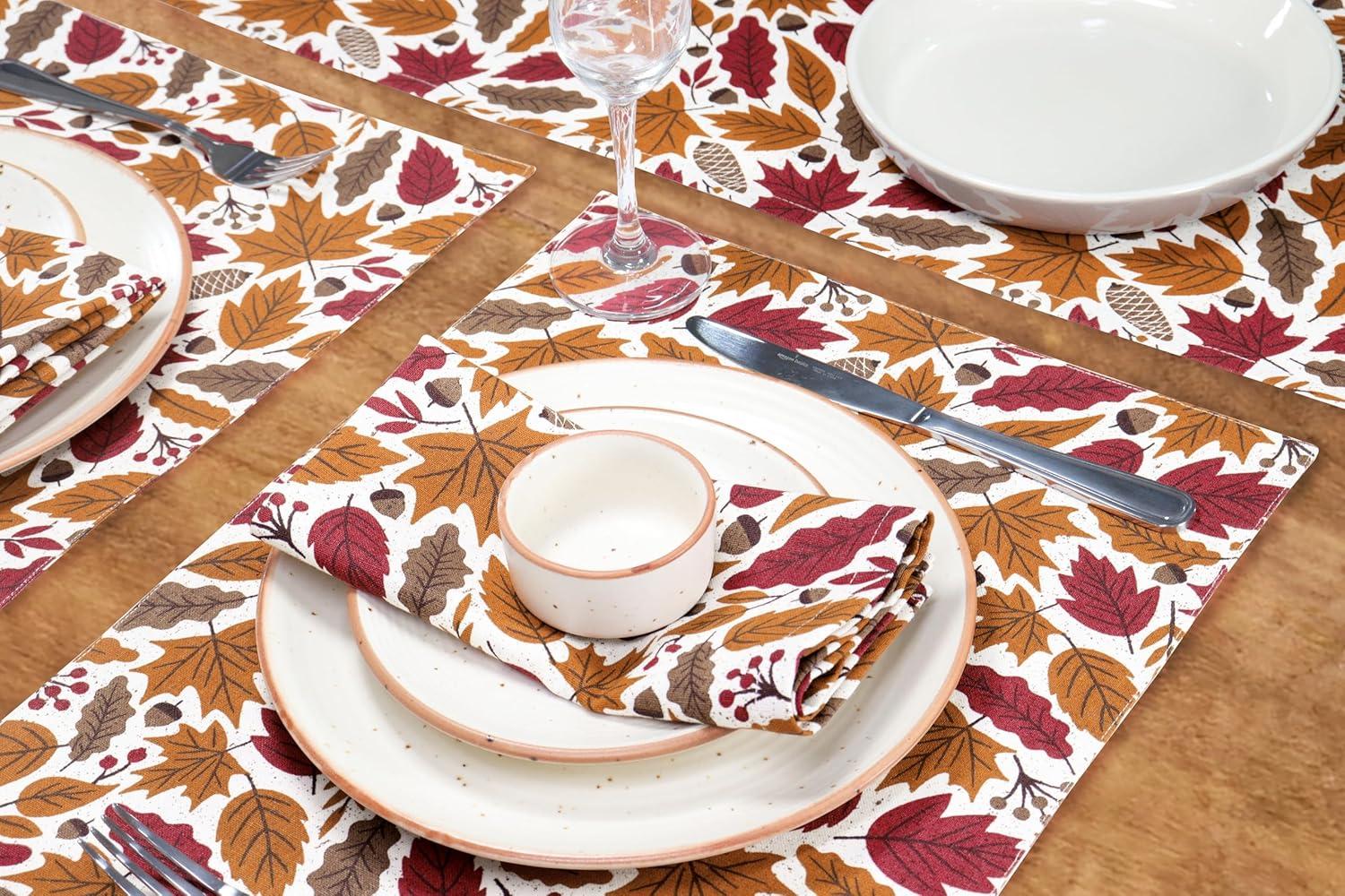 Match and Style: As part of the PurpleEssences Fall Collection, pair this cotton placemats set of 4 with matching tablecloths and napkins. Achieve a cohesive, stylish table setting that reflects the season’s charm with our fall leaf placemats.